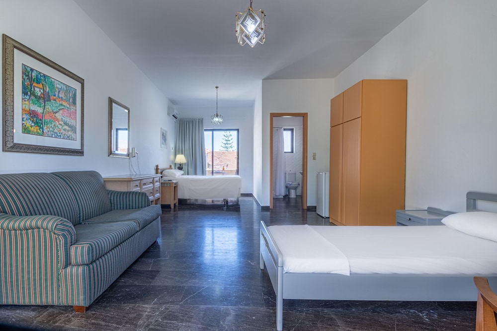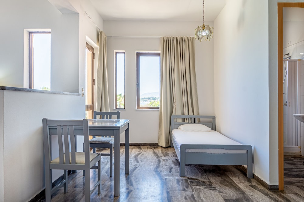 Store rom med gode senger. Typiske greske bad med trange dusjer. God internettdekning ute i restaurantområdet, men ikke i alle rom.