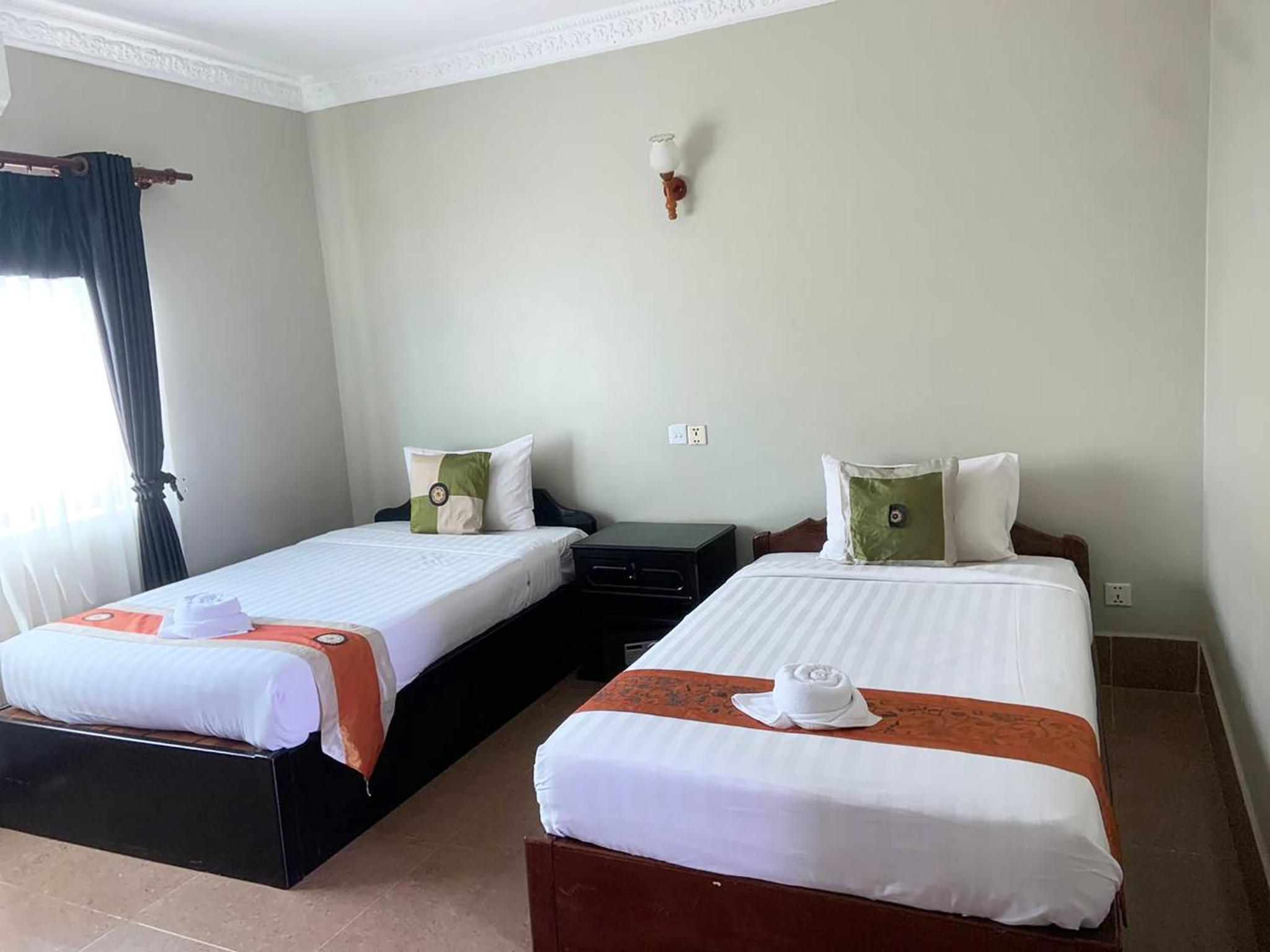 Central Night Hotel offers spacious air-conditioned rooms with modern Khmer-style décor, ensuring a comfortable stay. Guests can enjoy amenities such as cable TV, a safe, and hot/cold shower facilities in private bathrooms.