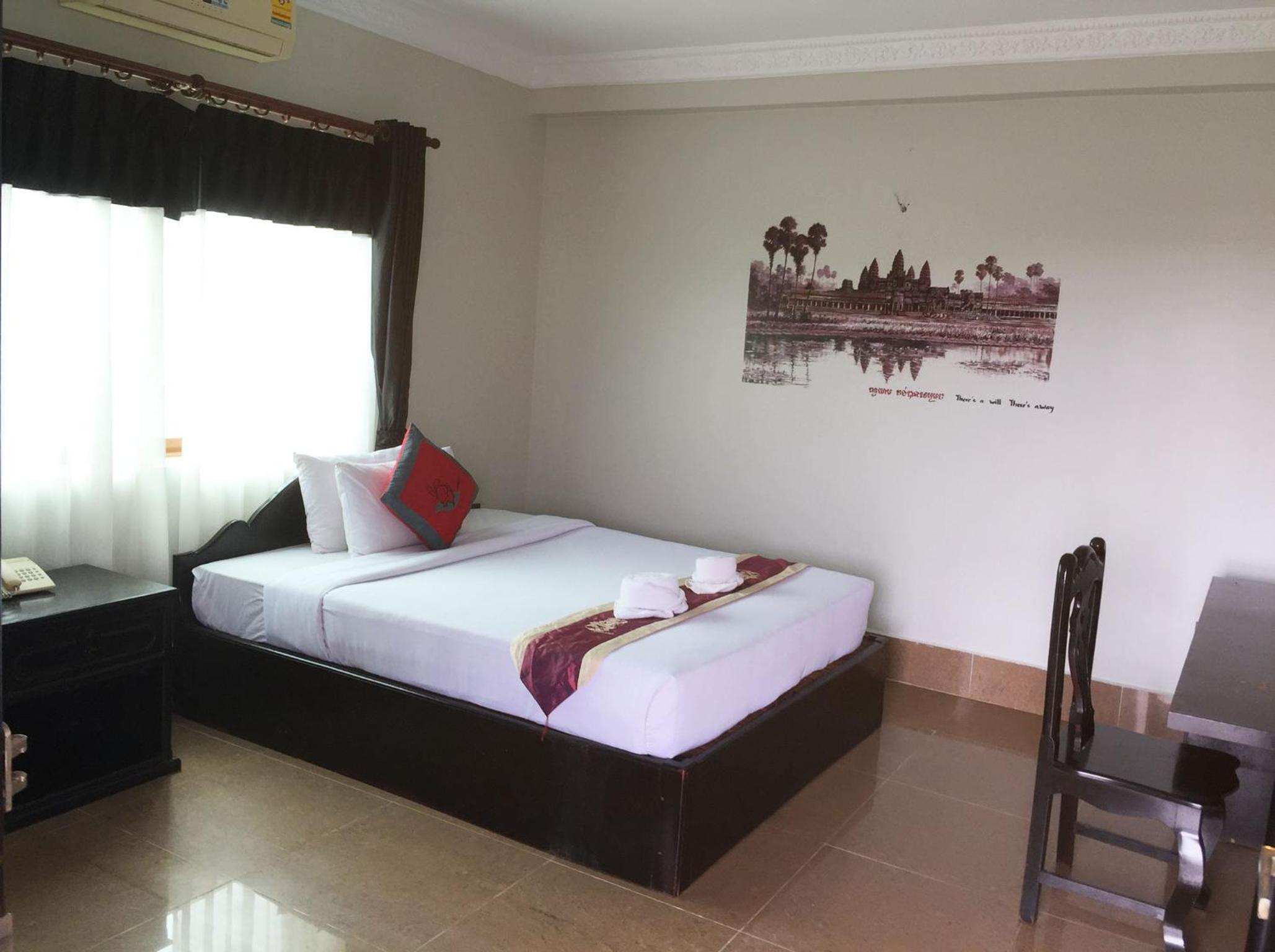 Hotel muy centrico pero sin ruido. La atención del personal es excelente asi como su precio. La limpieza y el confort estan muy bien teniendo en cuenta los estandares de Camboya.
