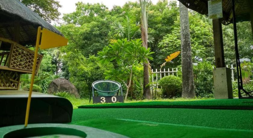 Free ride to bars not far but drop off and pickup very handy.nice gardens and atmosphere in middle of city.Advertised with pool but disappointed no water in it.Overall good place to stay .
