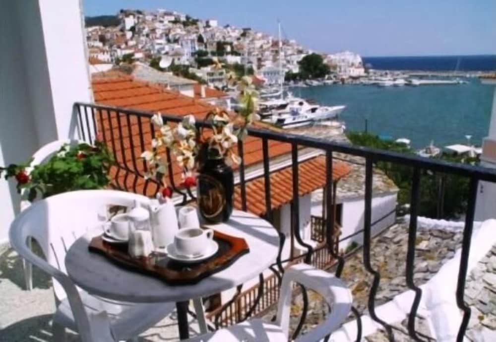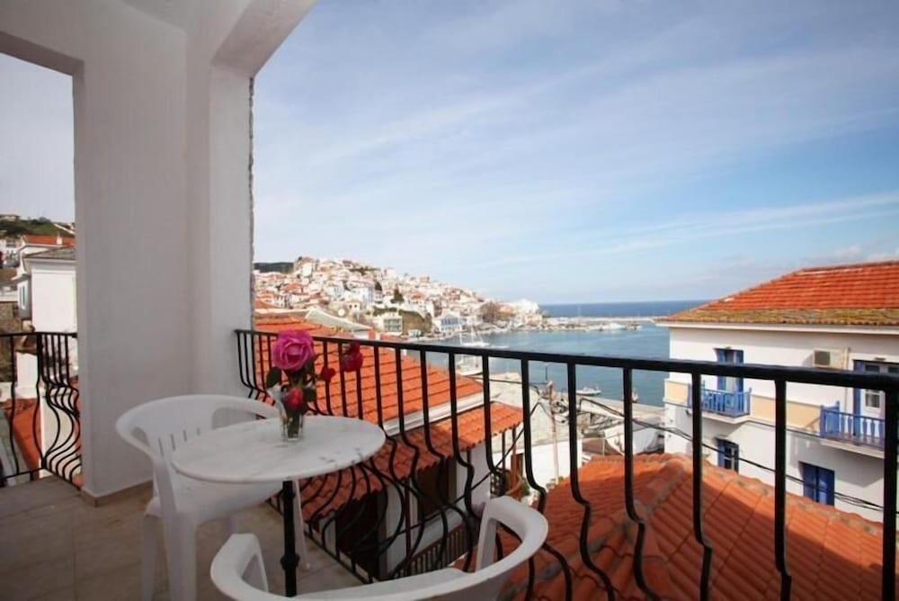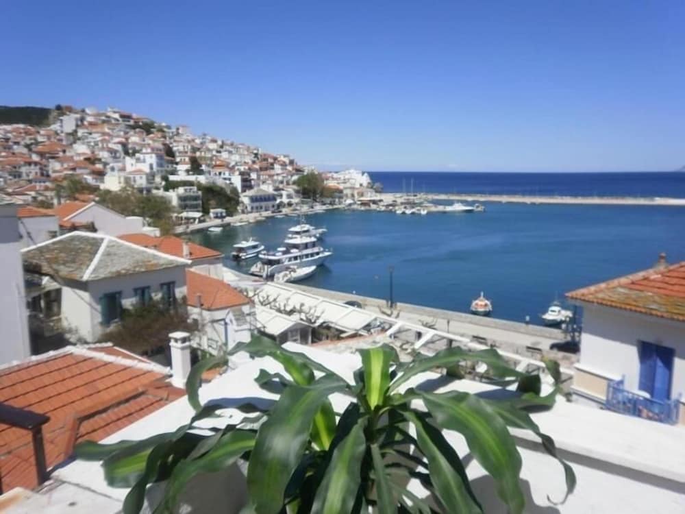 Hotellet ligger perfekt i Skopelos stad, mindre än en minuts promenad ner till hamnen med alla restauranger, men man slipper bli störd. Balkongerna är små, men med fin utsikt över hamnen. Ägarna mycket hjälpsamma och fixar för att allt ska fungera på bästa sätt.