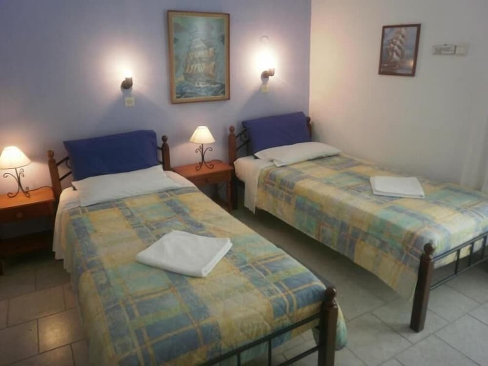 When arriving late at night by ferry from Agios Konstantinos we could see the hotel sign from the port. It was a short walk up a couple of winding lanes. The friendly owner of the hotel had waited up for us and showed us to our apartment. The rooms were lovely and clean, everything was freshly painted and well looked after. There were plenty of towels provided. The view from our private terrace was outstanding, looking over the town rising to the left, the harbour and bay in front and the wooded hills to the right. We had breakfast on the terrace every morning which was prepared for us with loving care by the owner. The hotel is ideally situated in the centre close to many tavernas and restaurants. We really enjoyed our stay there.