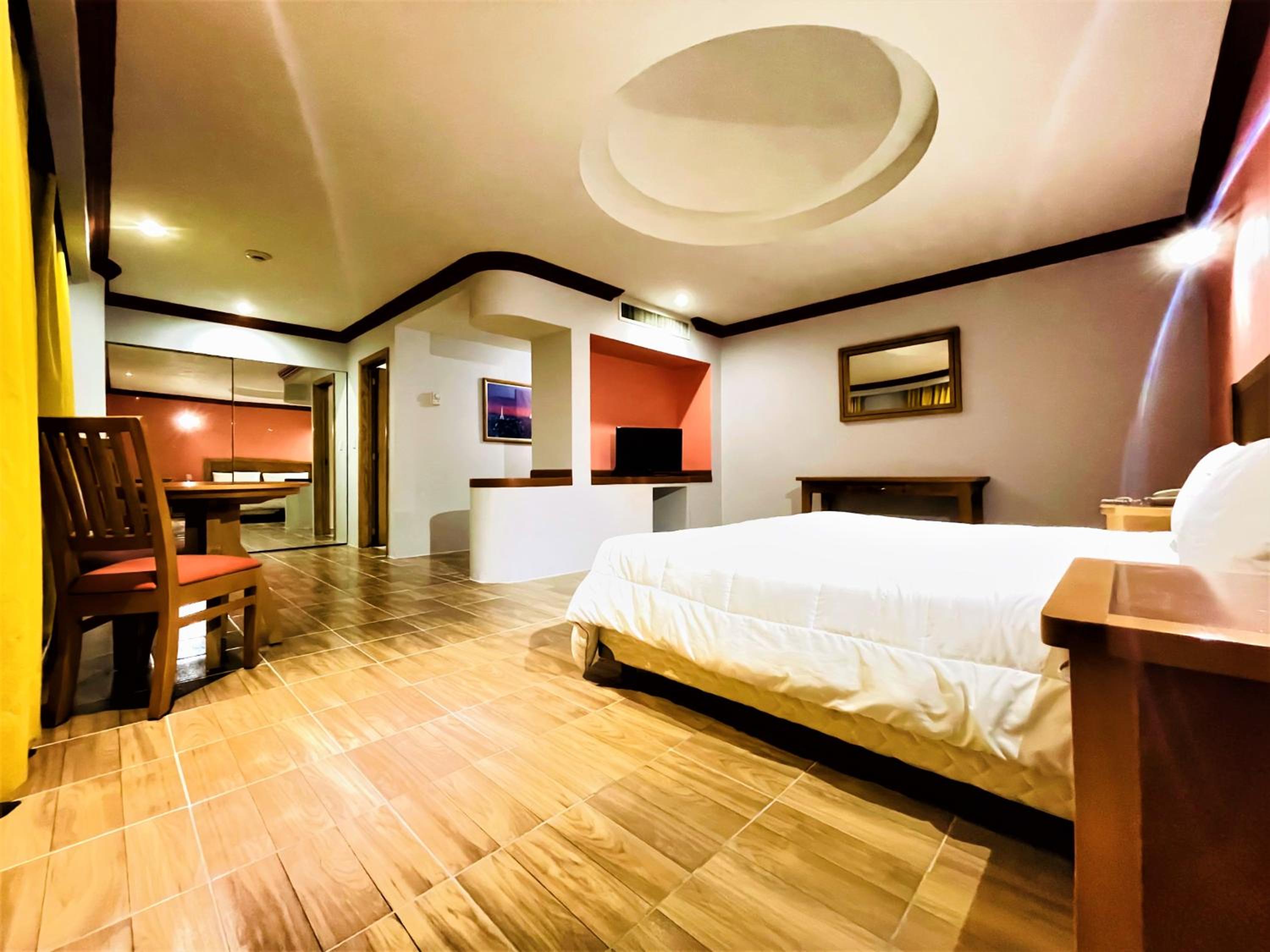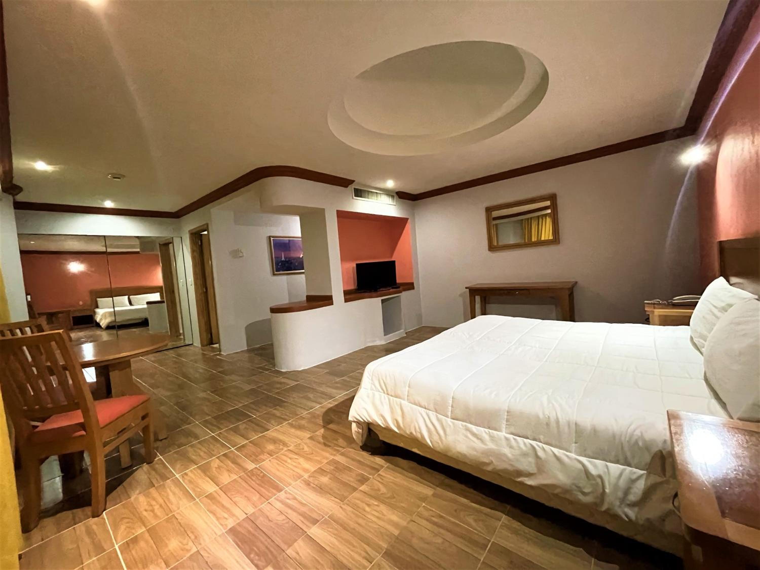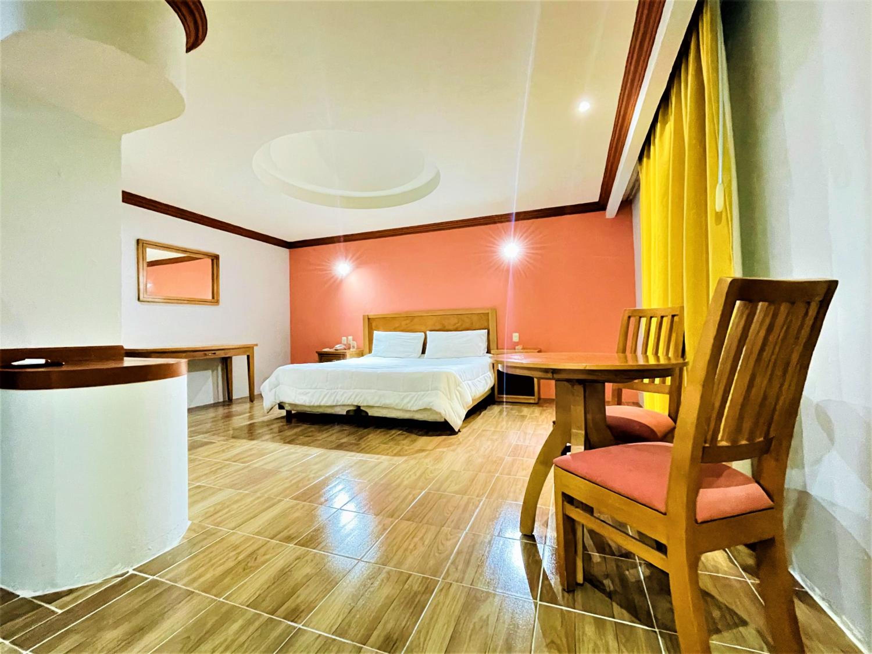 Un hotel grande, habitaciones amplias, el baño con tina para un baño relajante, la ubicación nos parecio genial hay un parque muy cerquita, lugares para comer a la vuelta, estacionamiento propio del hotel.