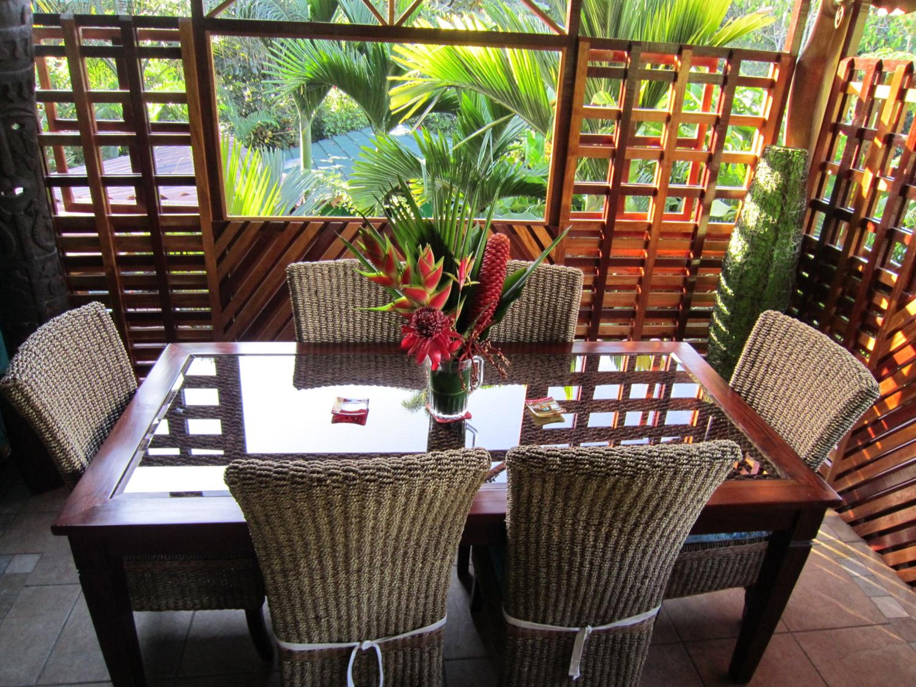 Enjoy 2 relaxing outdoor lounge areas with hammocks and benches, perfect for unwinding amidst nature's beauty.