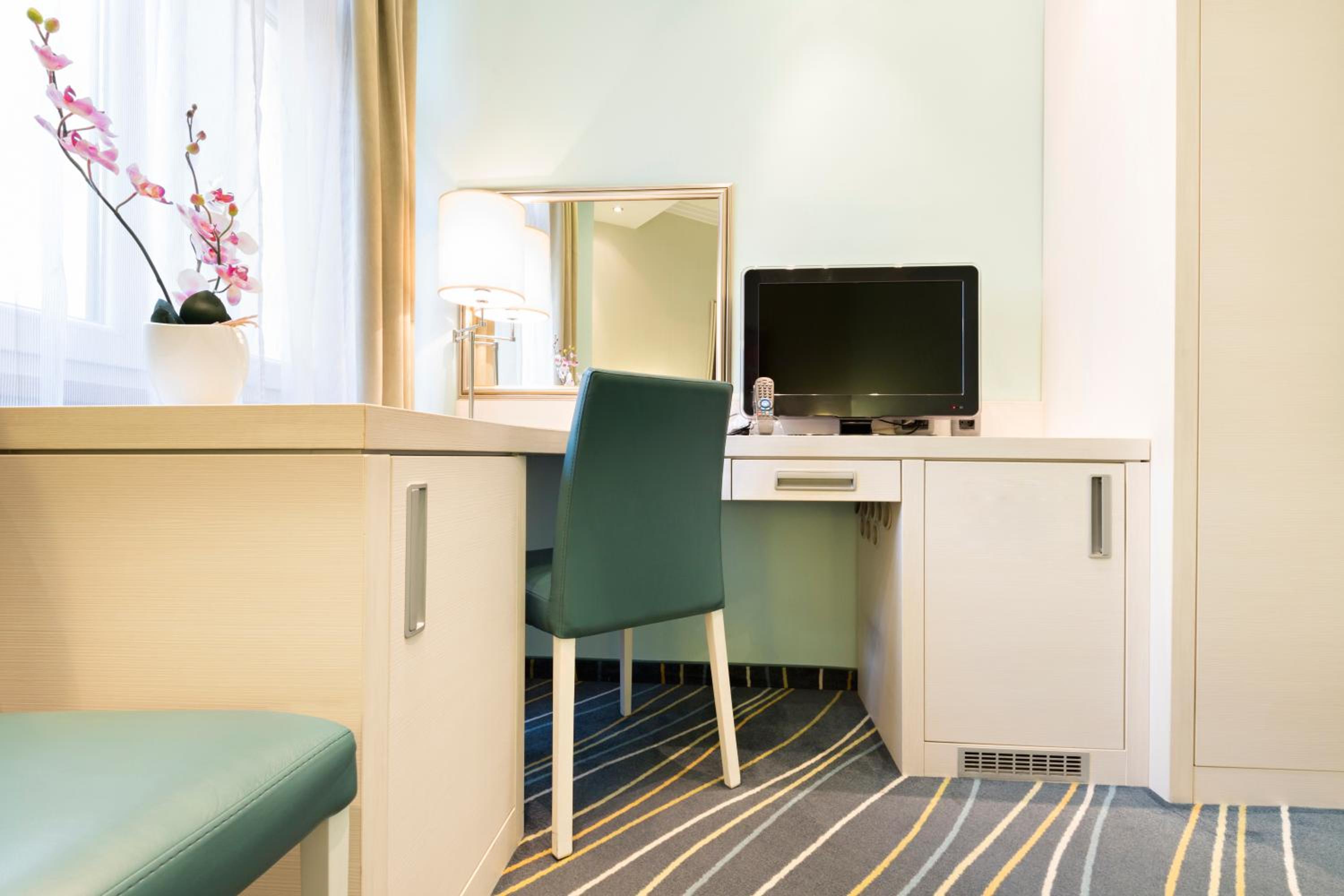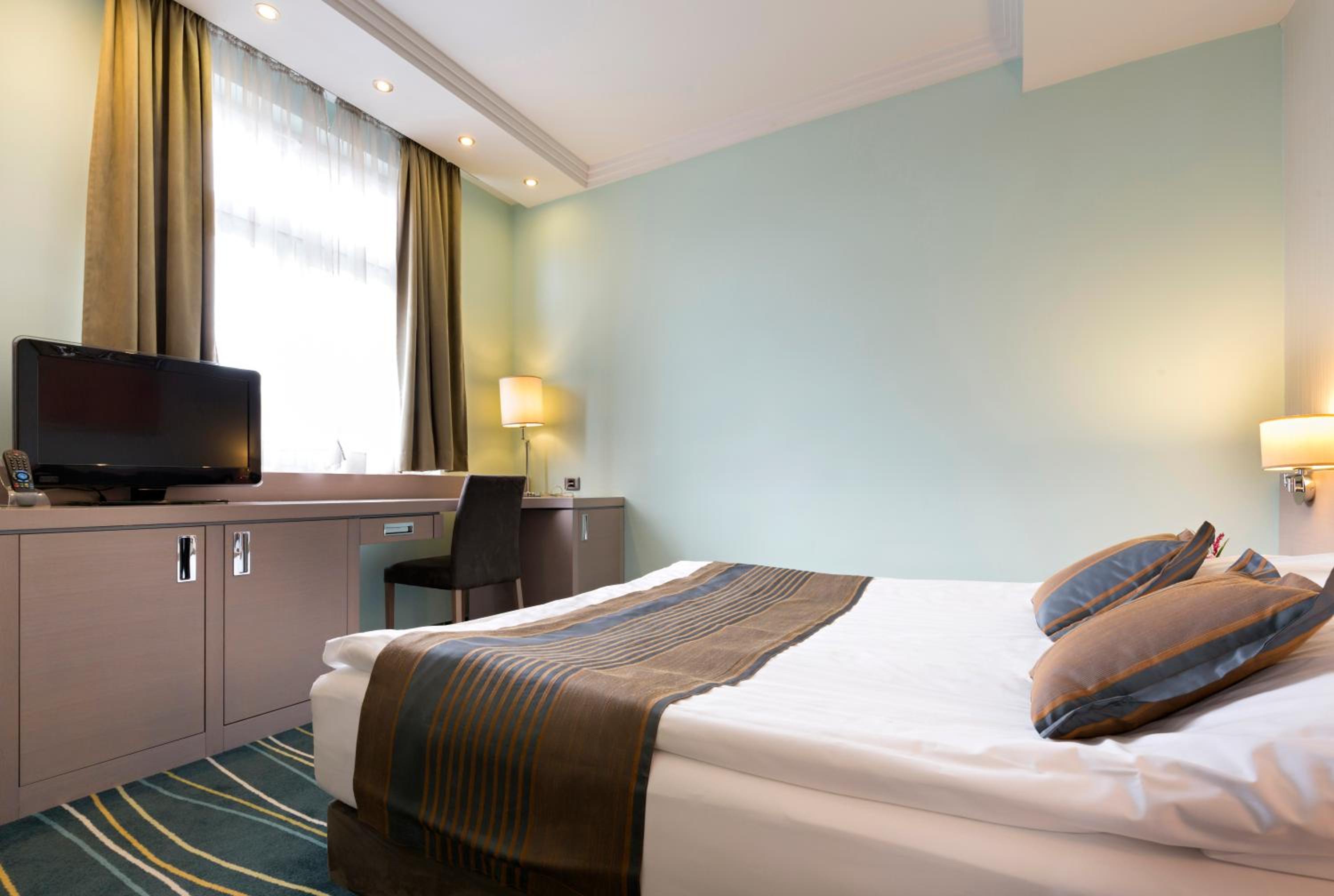Step into a cultural monument with a characteristic architecture and enjoy modern amenities like free Wi-Fi and flat-screen TVs at Hotel Prag.