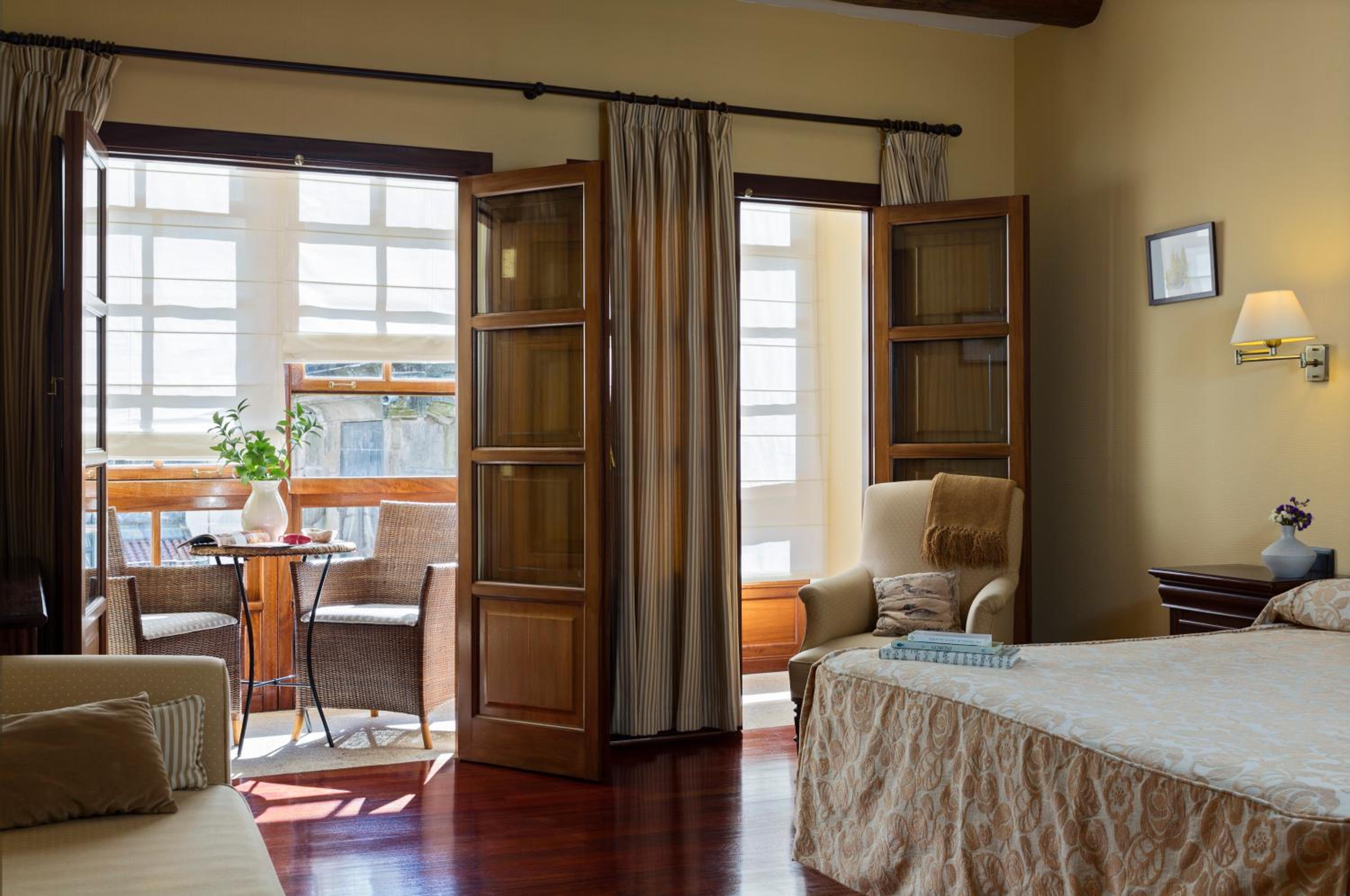 This is a family owned and operated boutique hotel. The staff was incredibly helpful and friendly, the nicest people. The rooms are super clean, comfortable and beautiful, the exposed rock wall and exposed wood ceiling beams make the rooms feel cozy and timeless. The location was exceptional, right in the heart of the old city, only a few steps from the Cathedral of Santiago de Compostela. They make the best Tarta de Santiago I've ever had.