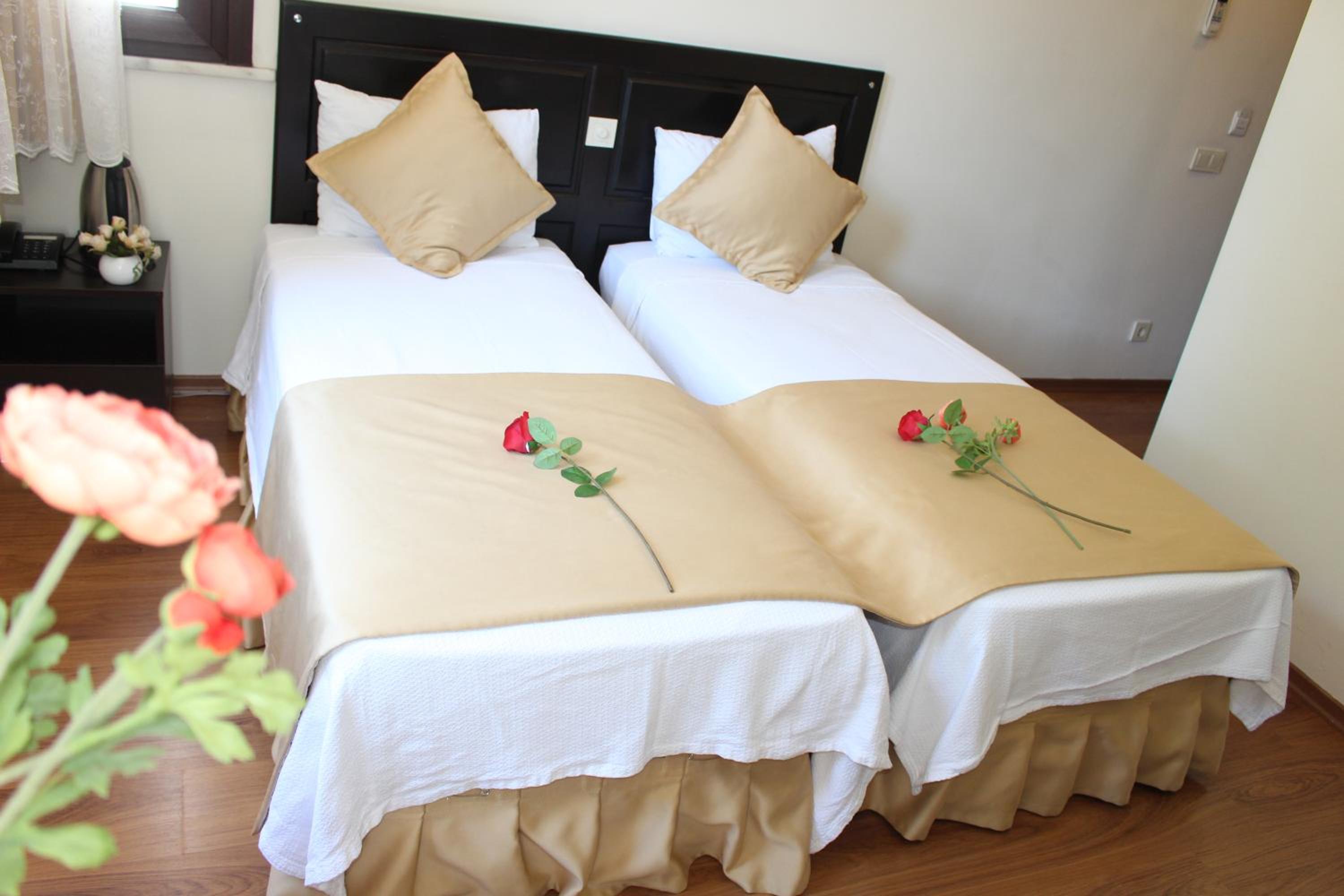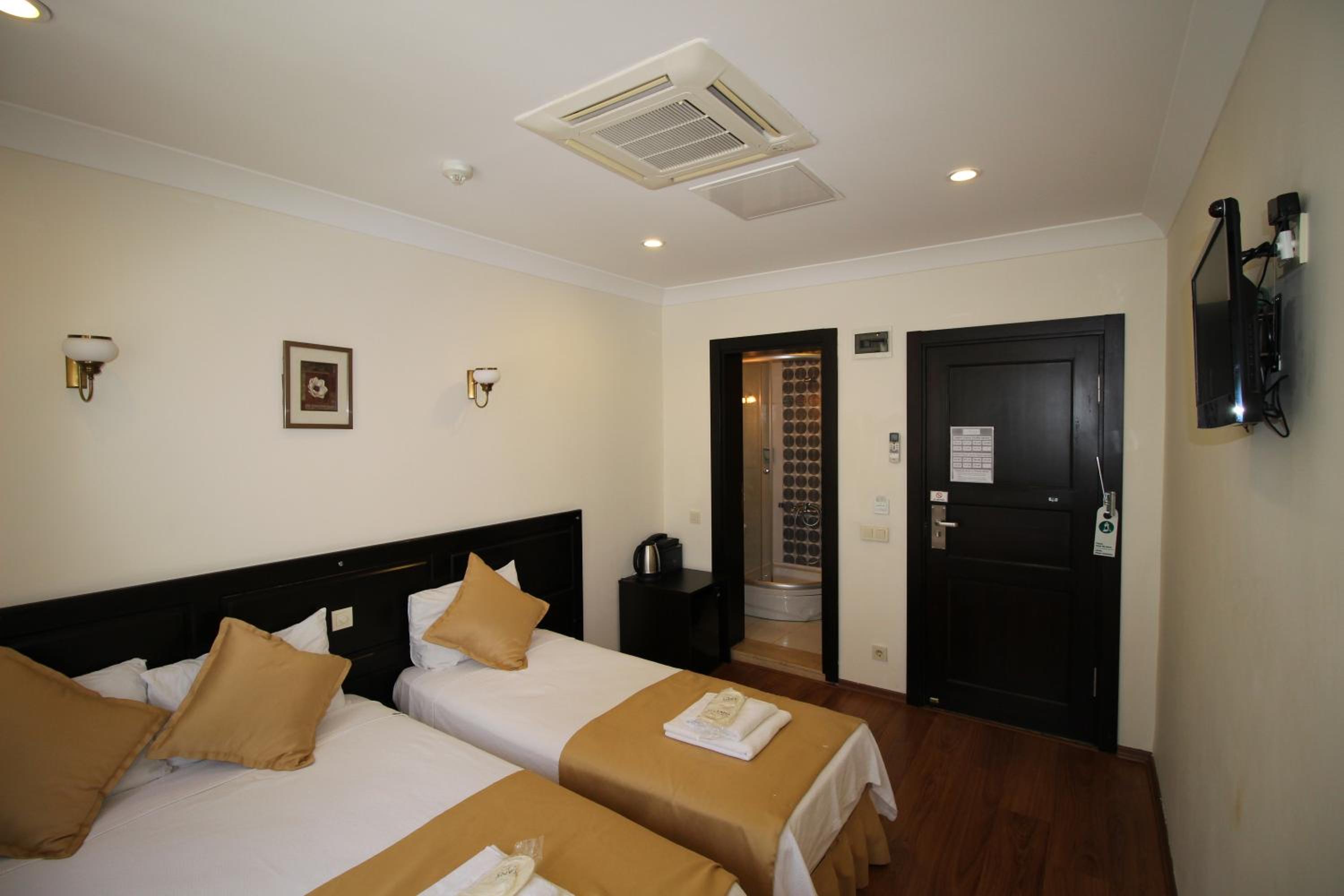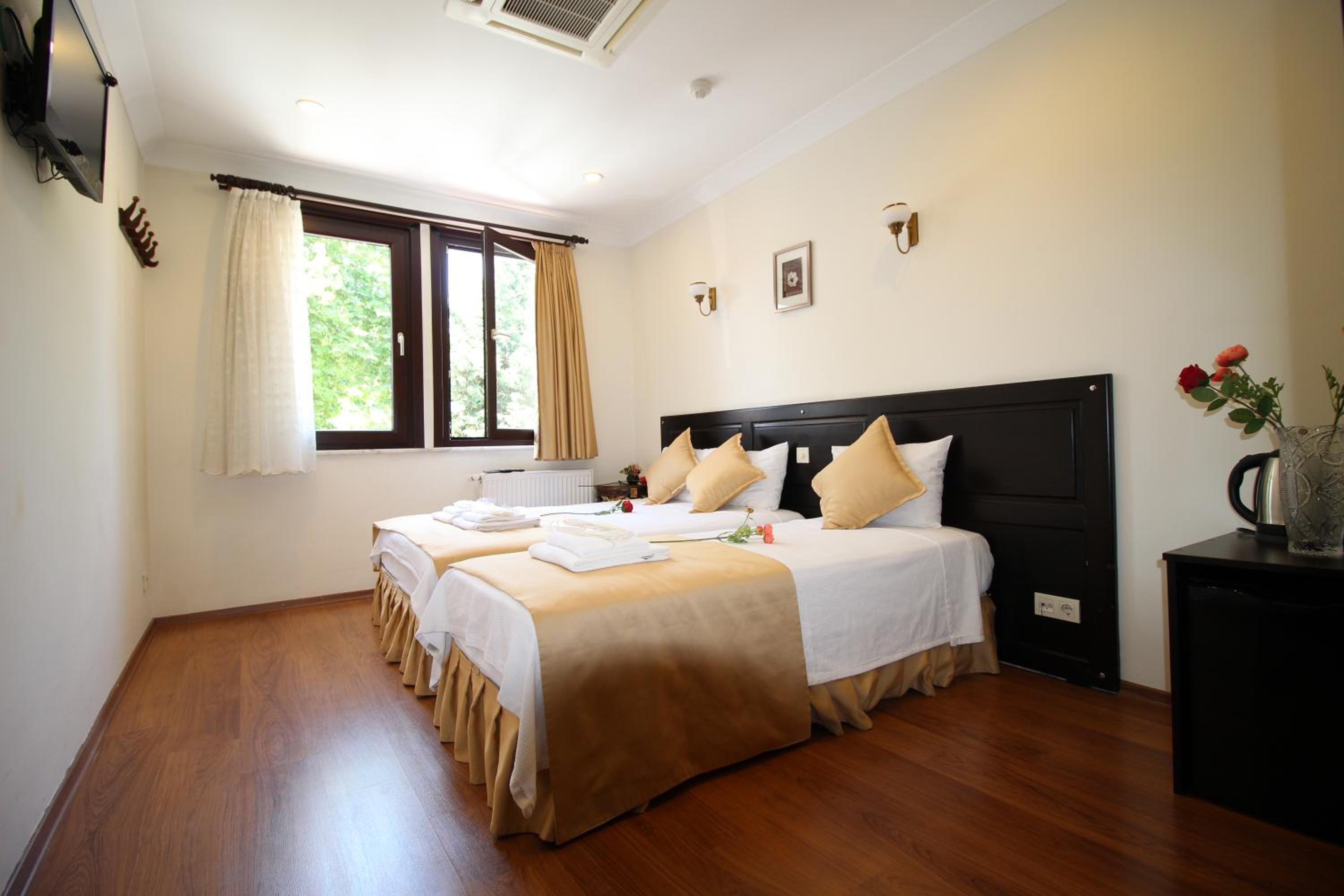 Experience the perfect blend of modern comfort and traditional elegance in our soundproofed rooms, each featuring air conditioning and Ottoman-inspired decor.