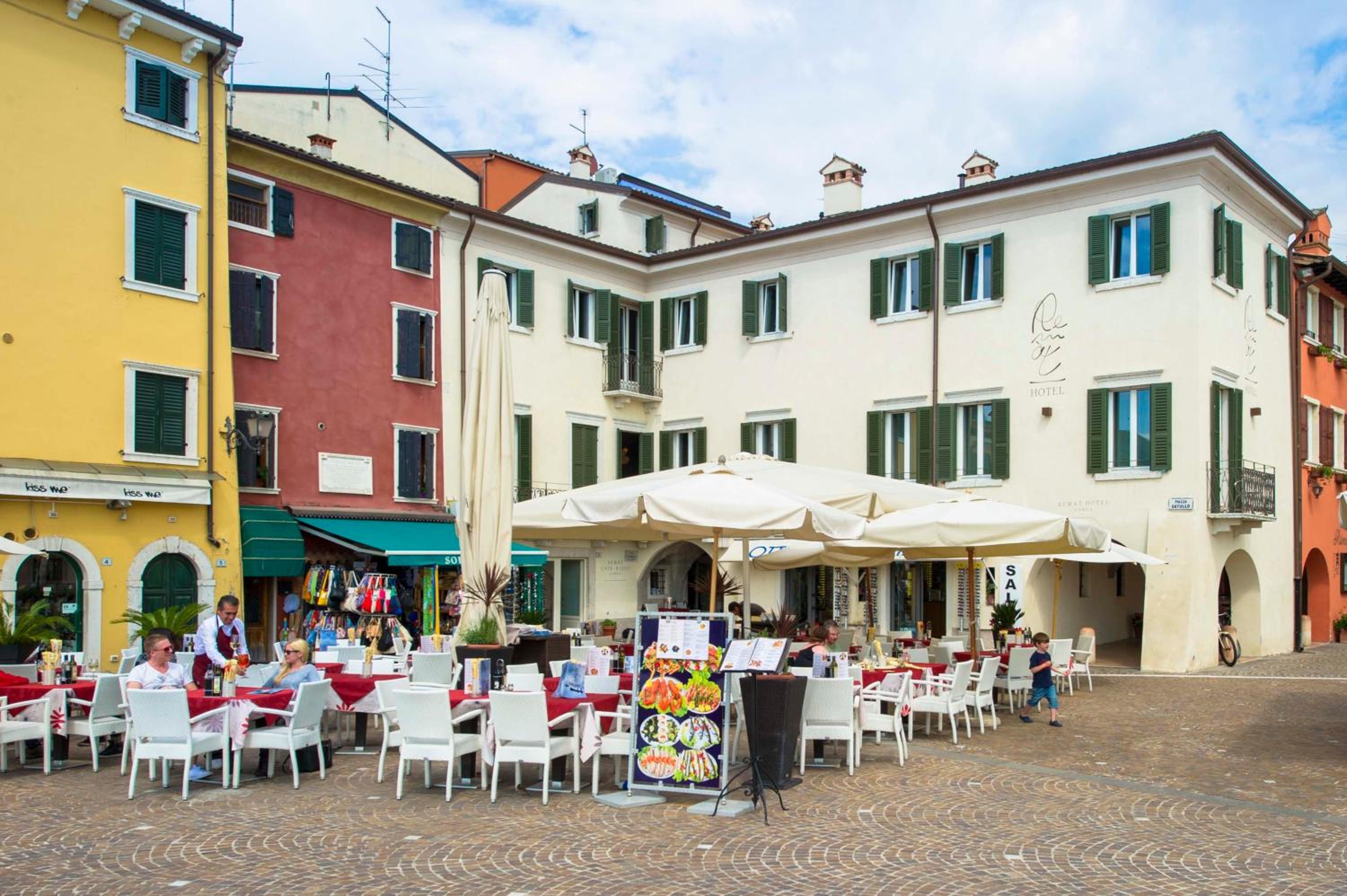 Hotel Remàt, located in the heart of Garda's historic center, offers a unique stay in a renovated historic building. The stylish rooms feature vintage furniture, air conditioning, and flat-screen TVs, blending historic charm with modern comfort.