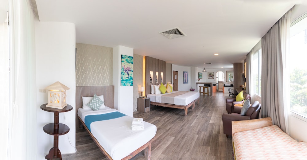Great hotel tucked away in what feels like a rainforest but is actually right on the beach. Great cafe/ restaurant, not crazy expensive and great food. Very quiet and relaxing away from the hustle and bustle of centre chalong.