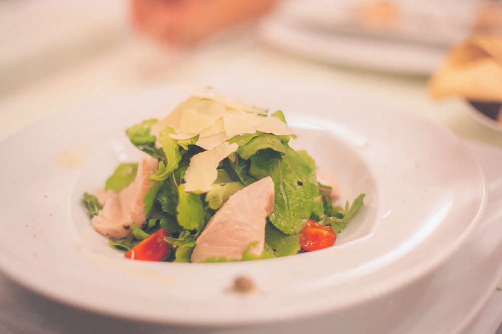 Individually-wrapped food options are available through room service