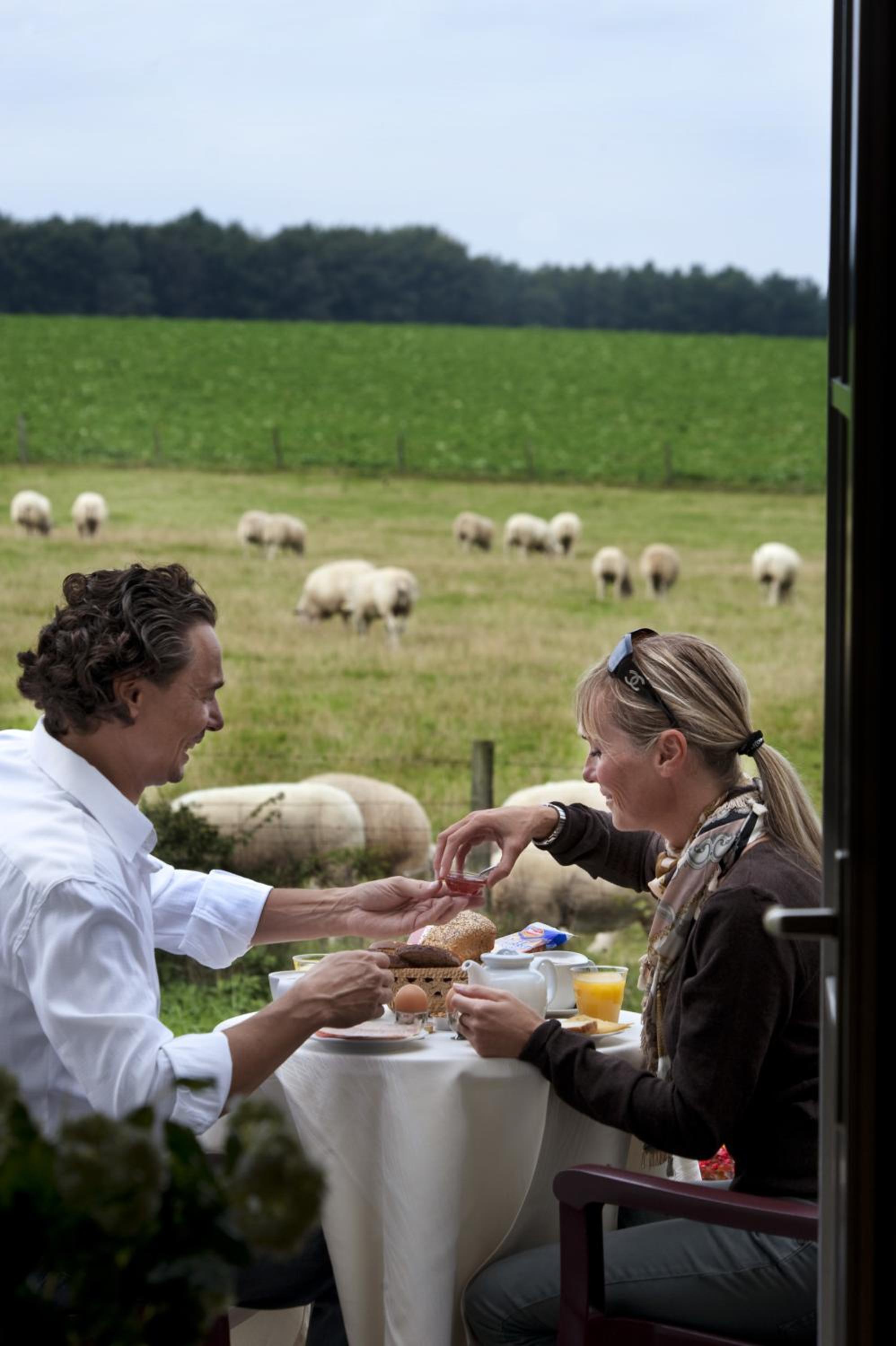 Het ontbijt was goed. Je kon heerlijk buiten zitten en er was voldoende variëteit. Personeel was vriendelijk, werkte hard. De locatie was prachtig. Heerlijk in de landerijen en rustig.