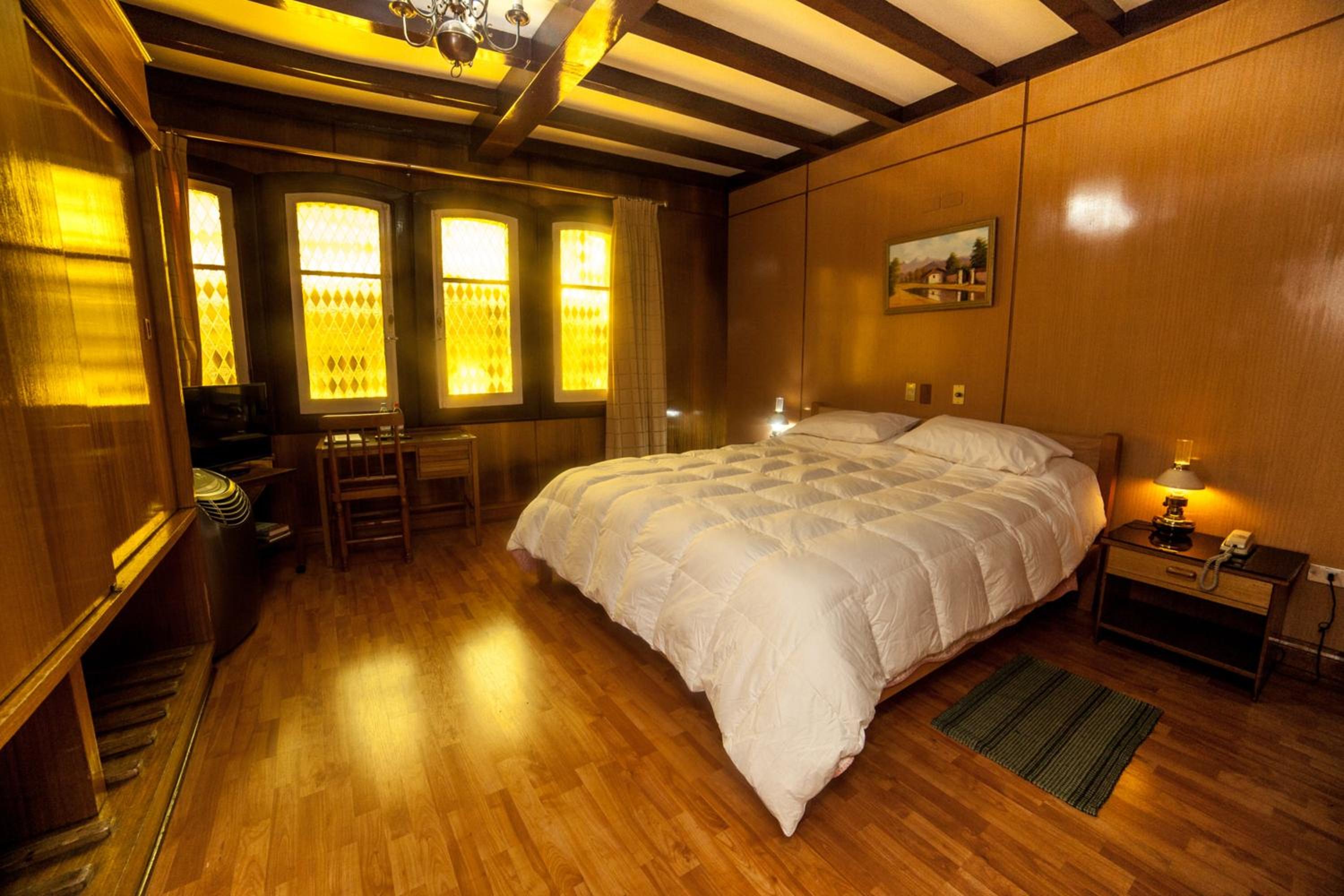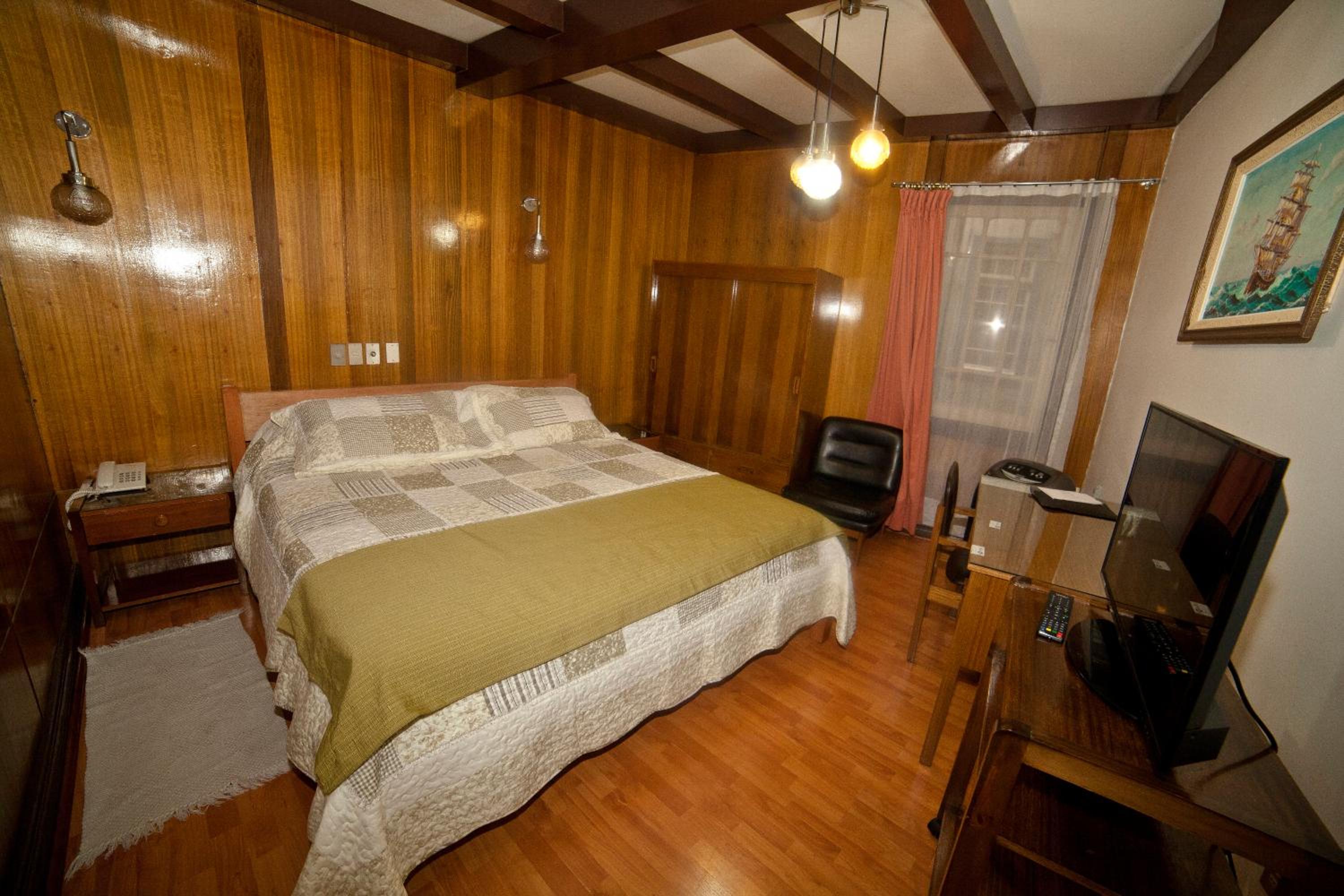 A localização muito boa, os funcionários atenciosos, construção antiga de madeira, mas confortável