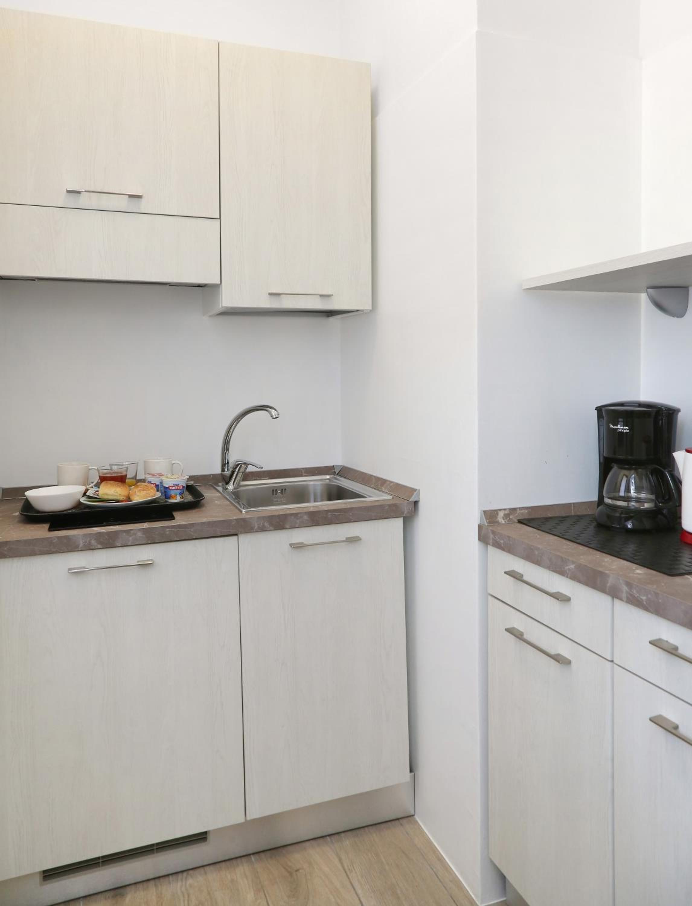 Super fand ich, dass man sich ein Tablett richten konnte und dann auf der Terrasse frühstücken konnte. Auch die kleine Küche war fantastisch.