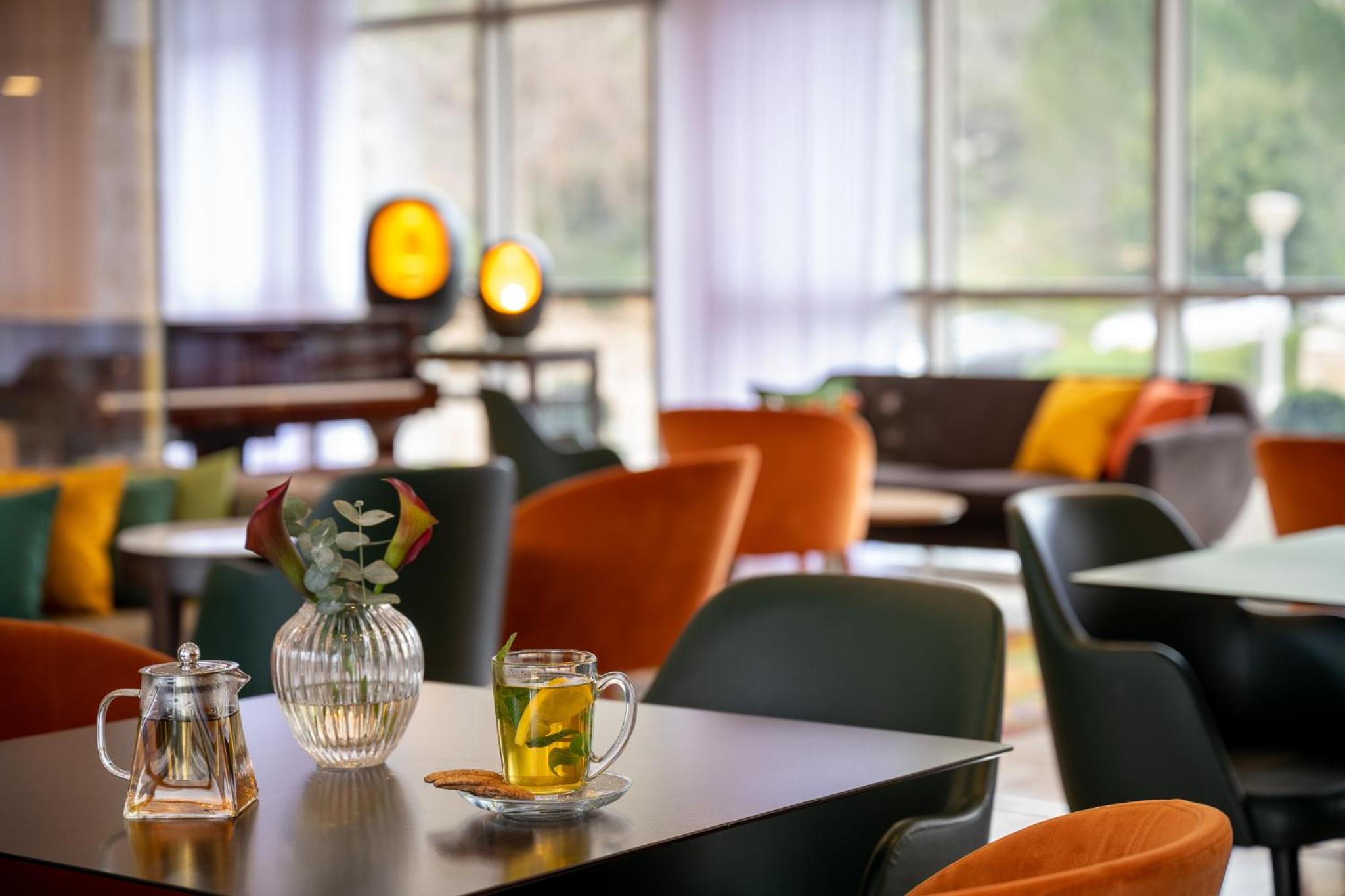 Clean, modern hotel with beautiful grounds and views of the forest. The staff was friendly and spoke enough english to understand what was requested. The Kosher breakfast was wonderful. Our room was quiet and restful. Our children and grandchildren enjoyed the beautiful terraces and outdoor pools.