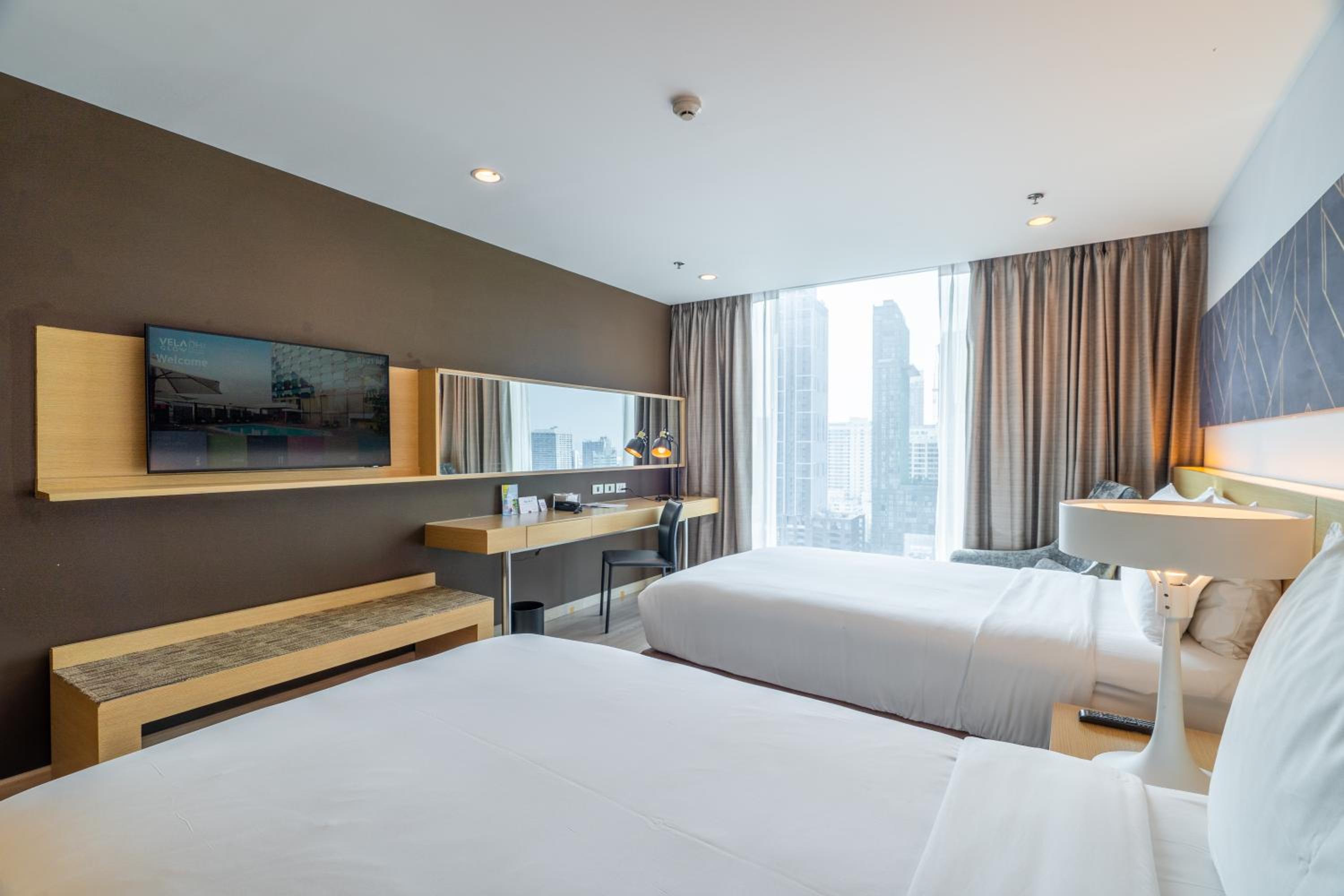 GLOW Pratunam Hotel, centrally located in Bangkok City, offers free Wi-Fi in all rooms. The hotel features an outdoor pool and a restaurant, providing guests with convenience and comfort during their stay.