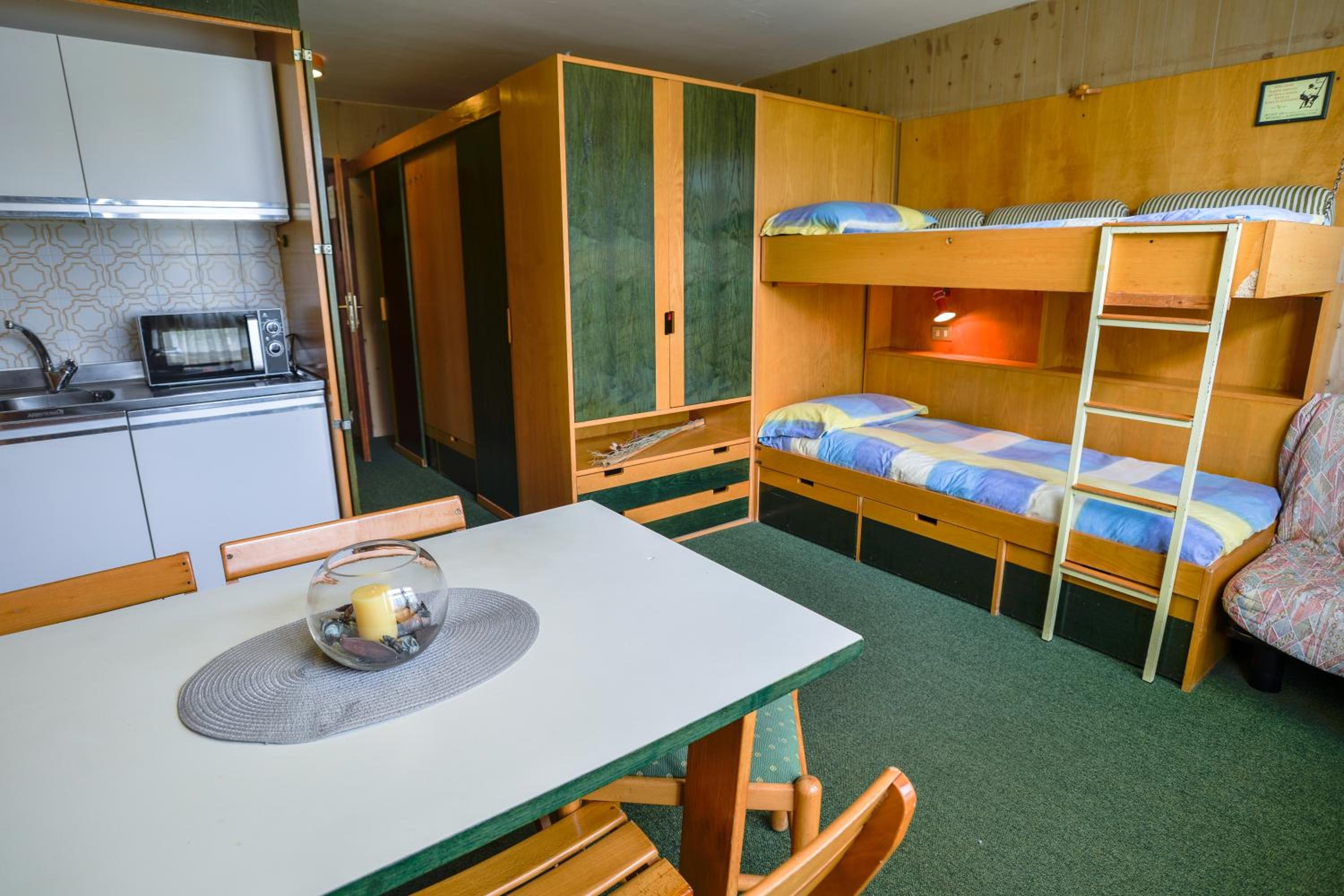 Relax in mountain-style apartments with wooden furnishings, kitchenettes, and LCD TVs, offering a cozy retreat after a day on the slopes.