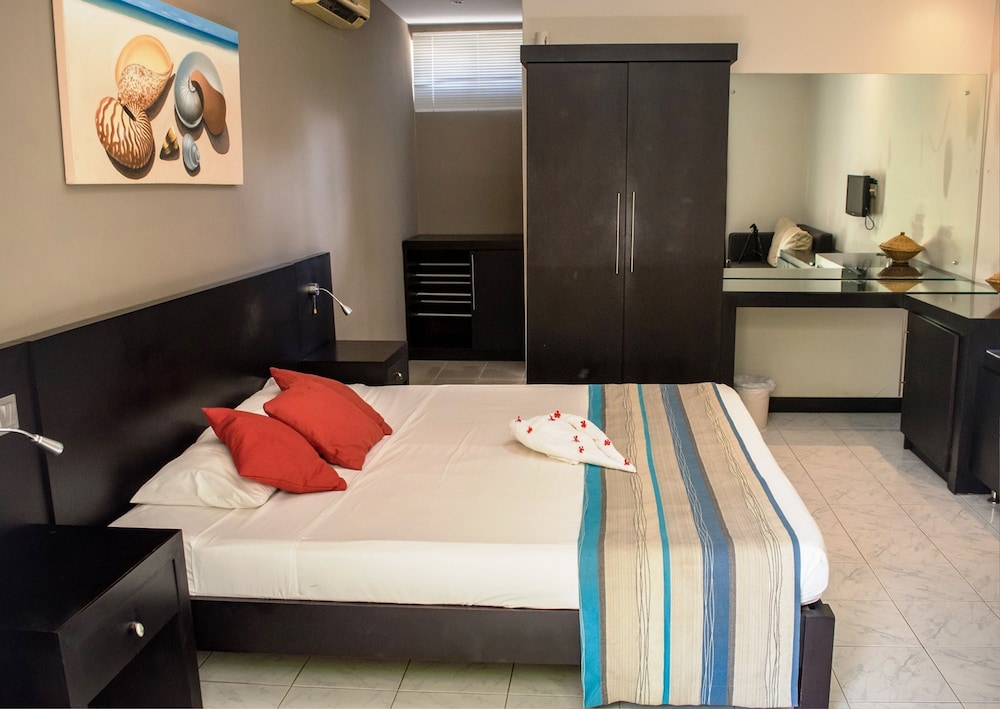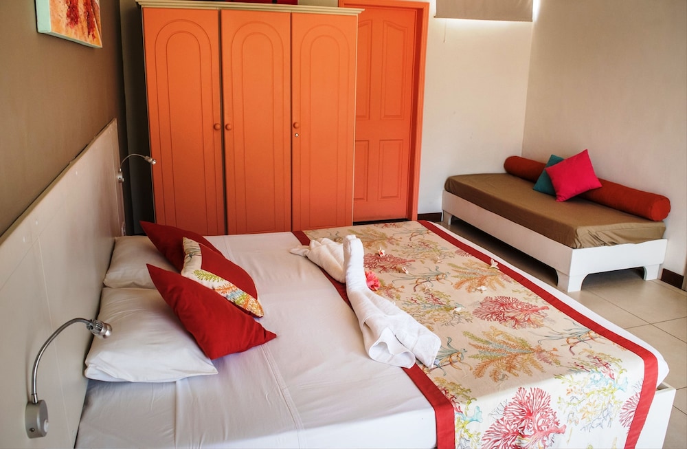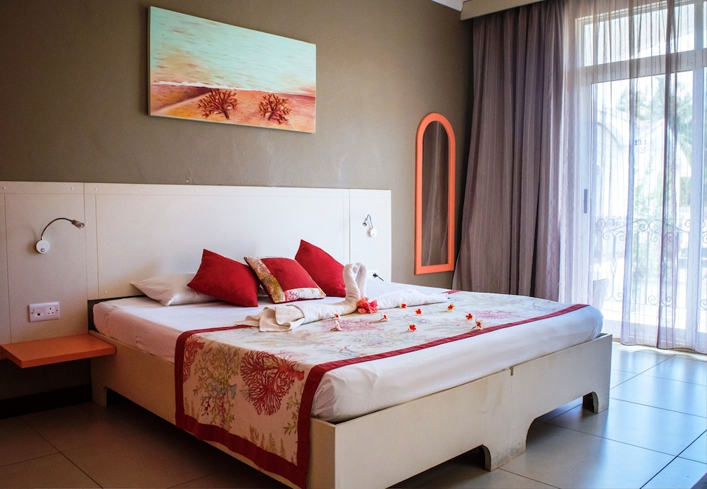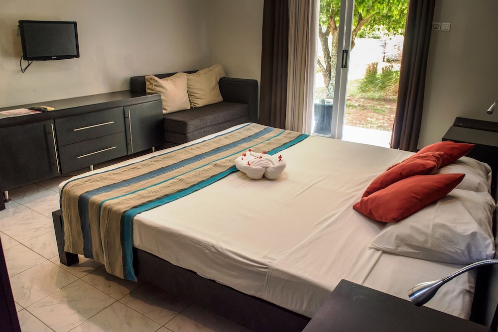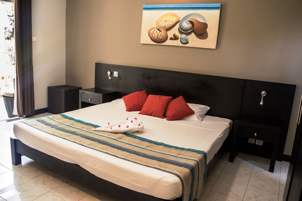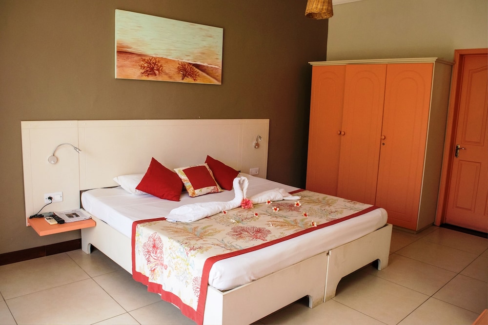 Vi bodde på hotellet i tre nätter. i området Mont Choisy finns inte mycket att göra. Många campade på stranden nedanför. Rummen var sådär. Mycket myror. Sängarna var hårda. Badrummet kan förbättras. Frukosten var ingen höjdare inte heller serveringen där frukost, lunch och middag serverades. Läckte vatten från taket. Dock var den ena bartendern mycket trevlig och gav oss bra service. Lunchen var bra. Trädgården var fin. Poolen väldigt liten. Wifi dåligt. Inget wi-fi på rummen. Därför svårt att ta reda på närliggande aktiviteter. Grand Bay som ligger cirka 5 minuter med taxi därifrån för 50 SEK eller lokalbuss för 10 kronor, var där man hängde. Vi betalade cirka 12000 SEK per natt. Detta boende är inte värt den summan. Vi hade kunnat tänka oss att betala hälften, cirka 600 SEK per natt, utifrån standard på hotellet och området. Vi såg att det Fanna andra hotell i denna prisklassen i Mont Choisy, som vi tror har liknande standard. Ska du bo här, börja med en natt och känn efter själv.