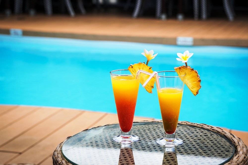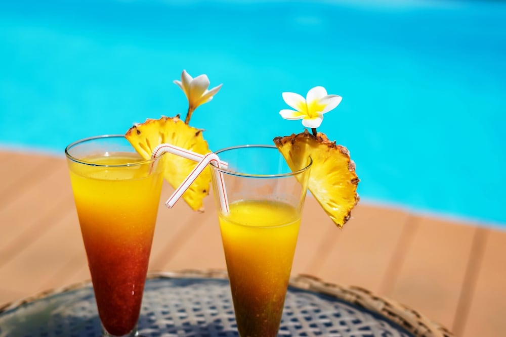 Enjoy international cuisine at Tekoma Restaurant with a poolside view, accompanied by a bar/lounge.