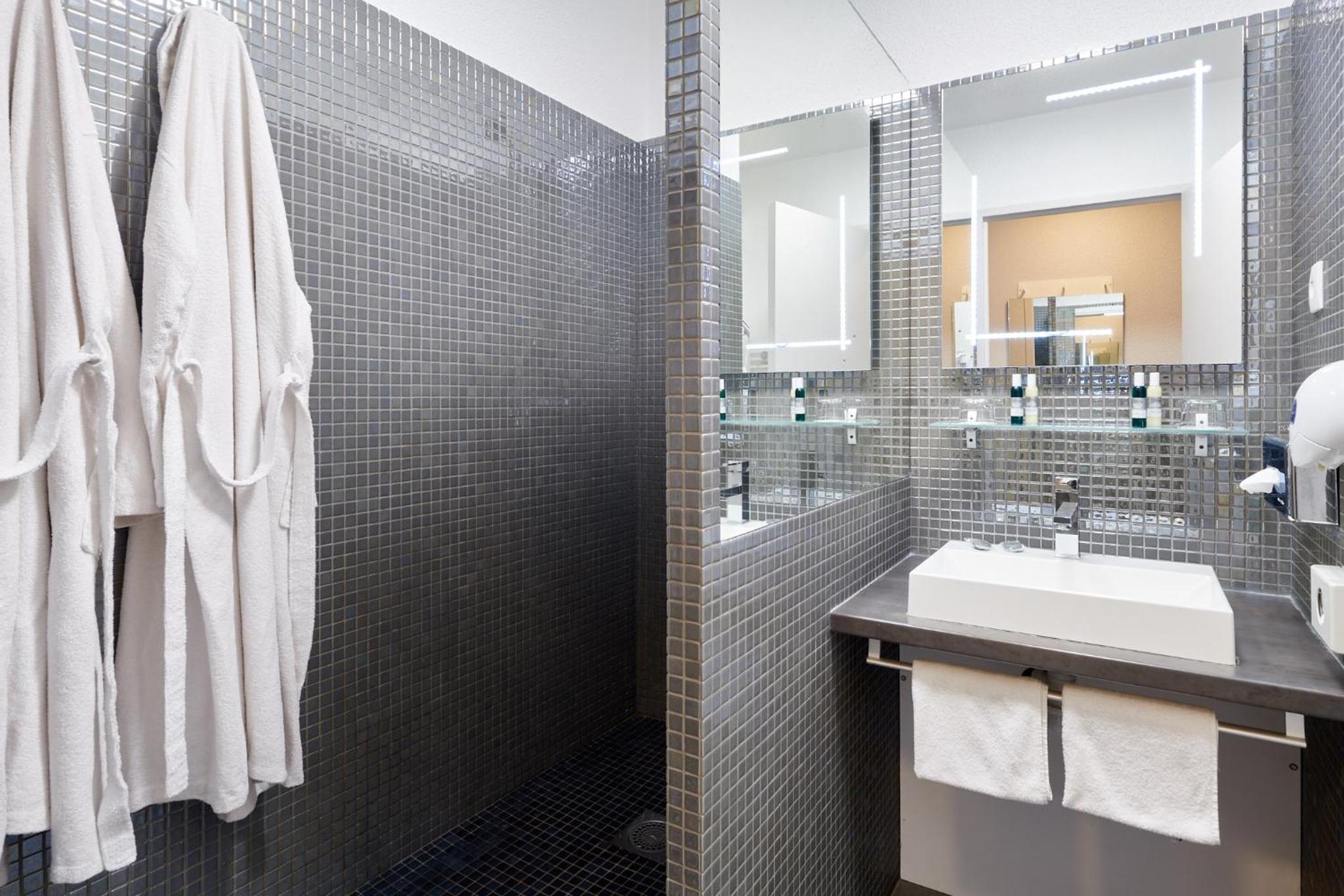 Un bel espace douche.