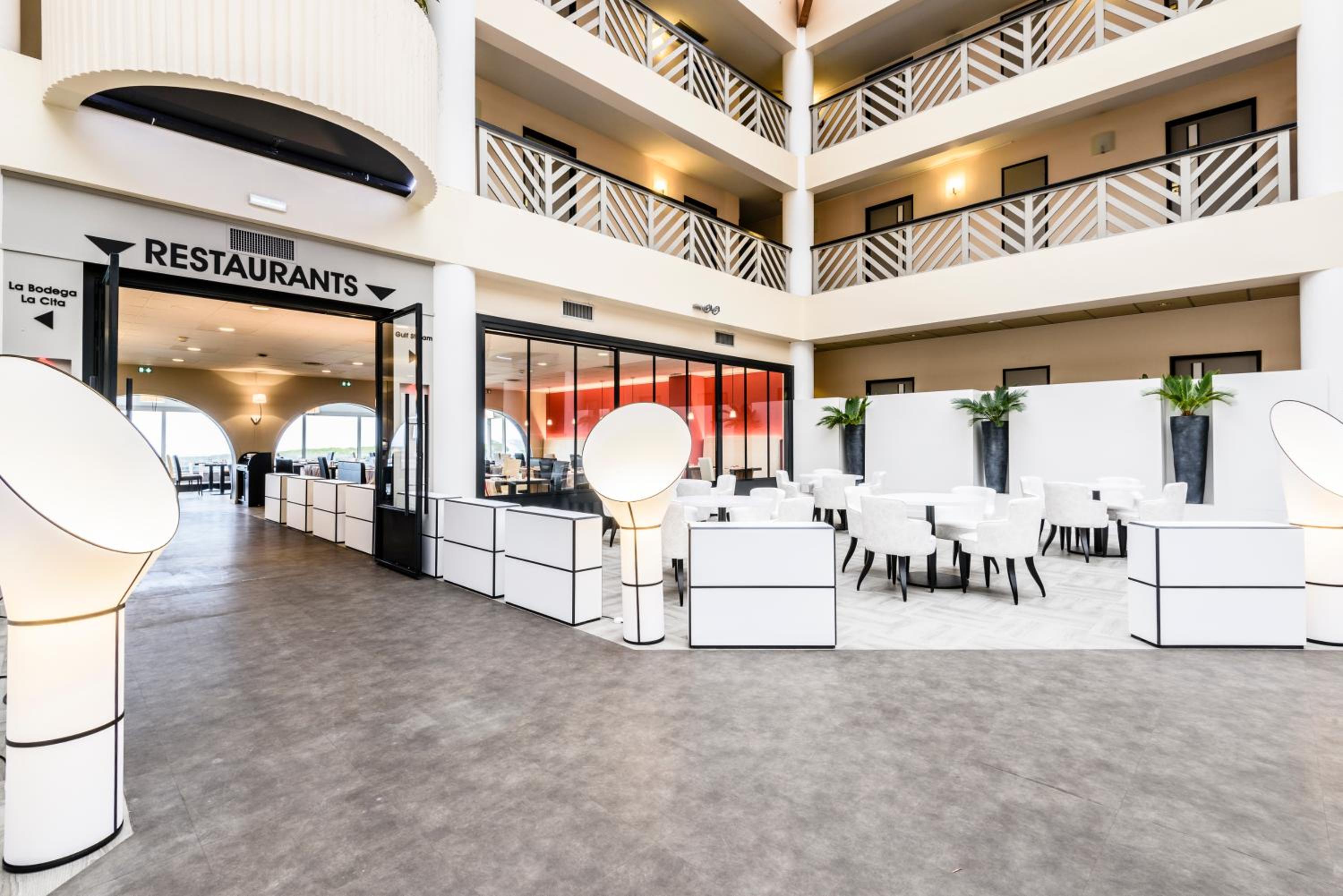 Savor low-calorie and traditional French delicacies at Gulf Stream restaurant, including a weekly seafood buffet. Unwind with tapas and cocktails at La Bodega bar.