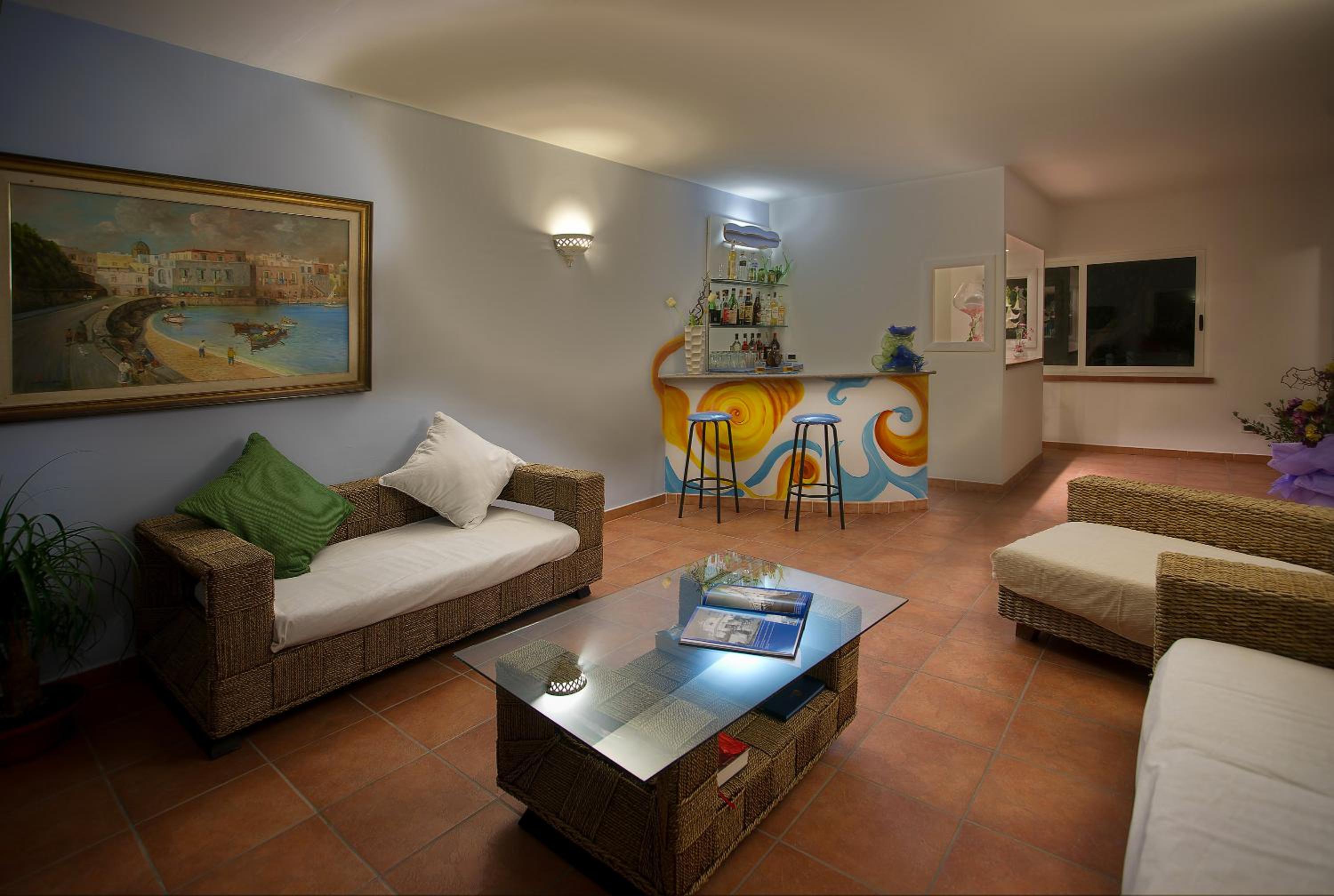 The hotel is ideally placed a few minutes walking from the beach (it's an uphill climb from the beach to the hotel) and the bus stop and a longer but beautiful walk from Forio's center and port.