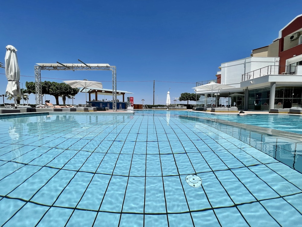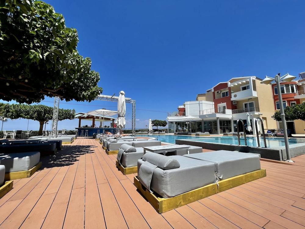 Otel cok cok eski ve önündeki denize giremiyorsunuz Cünkü deniz ile otel arasinda islek bir cadde var Denizde cok dalgali ve sezlong konulacak yer yok