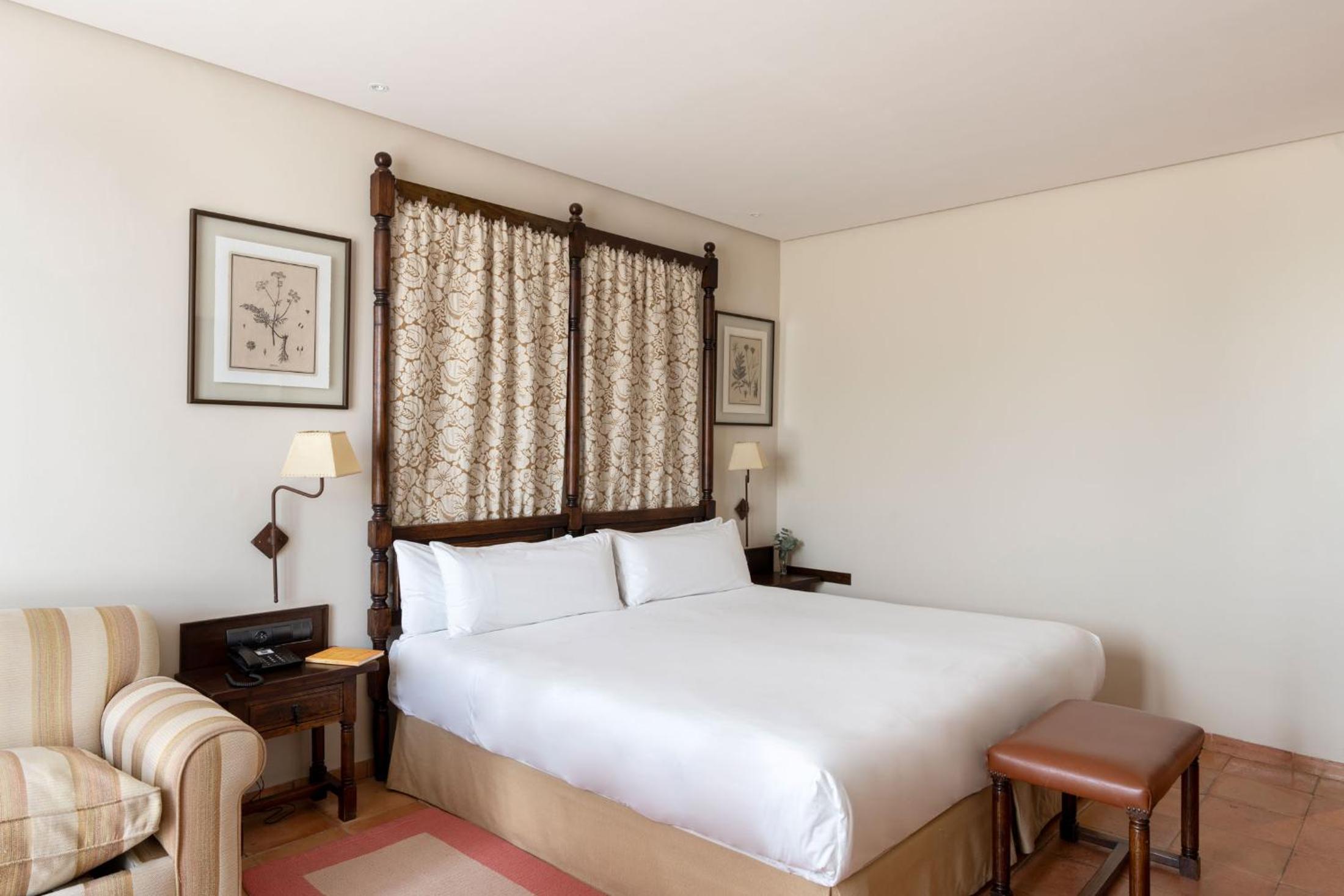 La ubicación es buena y tenia aparcamiento. El personal de recepción amable. El hotel es bonito, pasillos, salones, etc, pero la habitación normal, no era acorde a un parador, hay mejores en hoteles que no lo son. El desayuno muy caro, 20 e por persona, la comida y cena ya ni lo pregunté. Un café 4 euros.