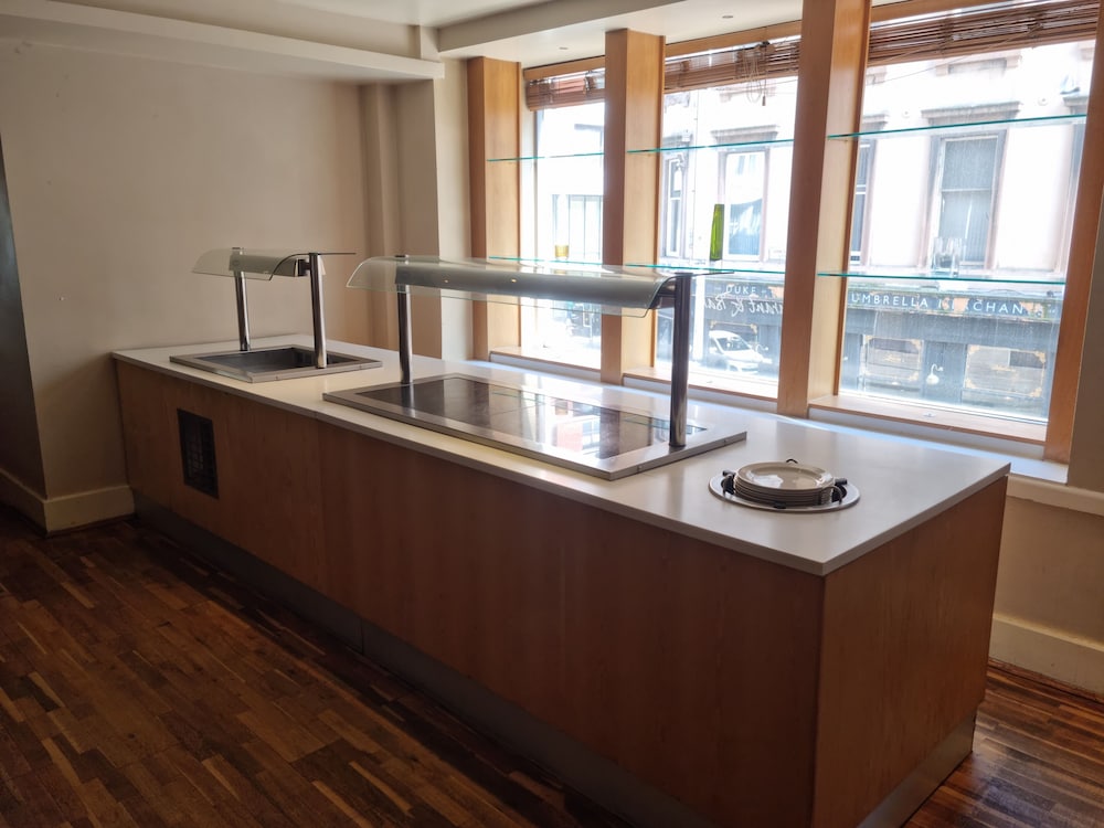 Hotel was cheap so for the price it was great. Close to everything, train station, cinema, food and plenty shops and activities. Hotel was cleaner than expected for the price and area. It is glasgow as a local i know its a colourful nightlife in the area. Hotel bed was two singles pushed together when we had a double room. The springs were super uncomfy like ive never had such a cheap mattress before or broken one, but it was the only bad thing we had to deal with, tv didnt get a good picture either but we werent too bothered about that but others might be. We only stayed one night for closeness to a concert so id say its great as a cheap base but anything more id have rather paid more for comfort. Building is very secure which i liked, you need keycards for elevator and stairs so only guests and staff can access where we were. Did not try the food sadly we wanted to try other local eats instead but seemed reasonable pricing.