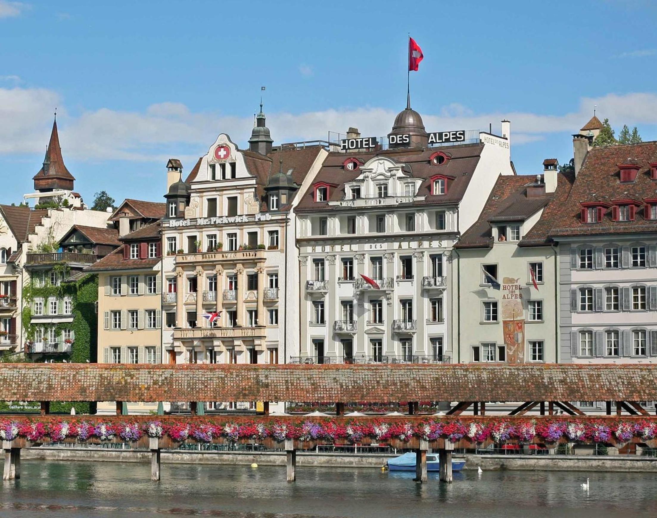 Conveniently situated near key attractions like the Chapel Bridge, Sights, Culture and Congress Center Lucerne (KKL), and the train station, Hotel DES ALPES is the perfect base for exploring the beauty of Lucerne. Book now for an unforgettable stay!