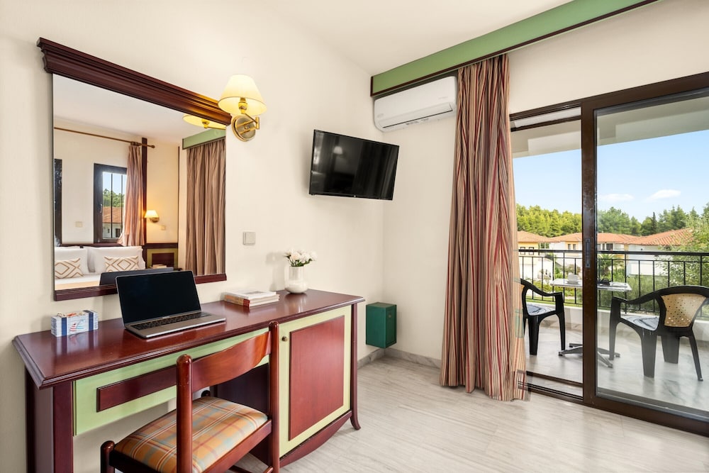 We stayed 11 days as 3 families and liked the green surroundings and the nearby beach. Employees and fun team are friendly. The cons are the daily buffets and beverages which are below average and quite repetitive. My family initially took the family apartment which turned out to have very old furniture, only one AC in one of the rooms and a very old shower with bad curtains so the water ended up on the floor. We moved next day to an upgraded room which was much more modern even though much smaller.