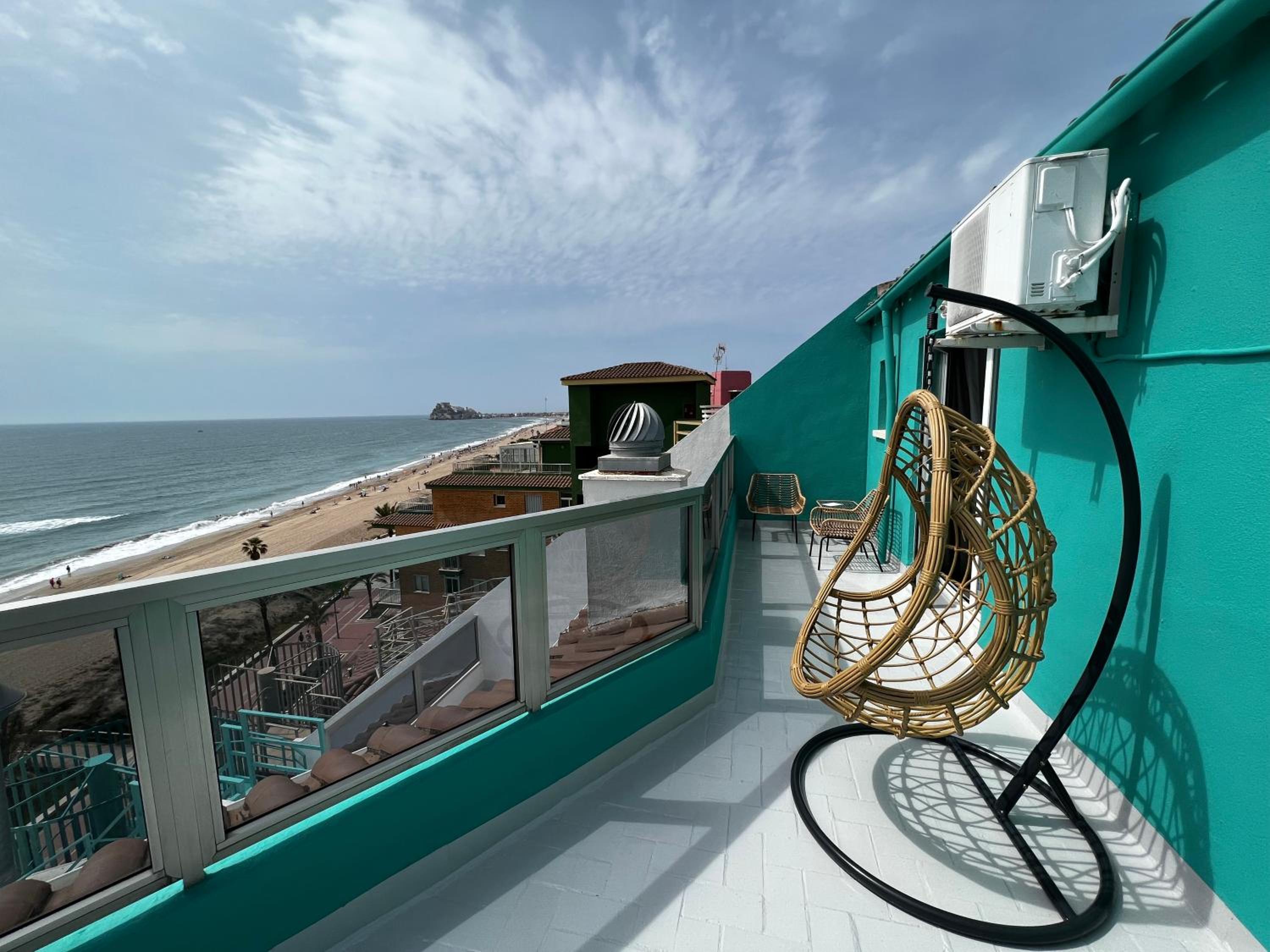 Luxurious Accommodations: Hotel Hey Peñíscola offers bright, air-conditioned rooms with terraces boasting scenic sea views. Each room is equipped with flat-screen satellite TV, a safe, and an en-suite bathroom with a hairdryer.