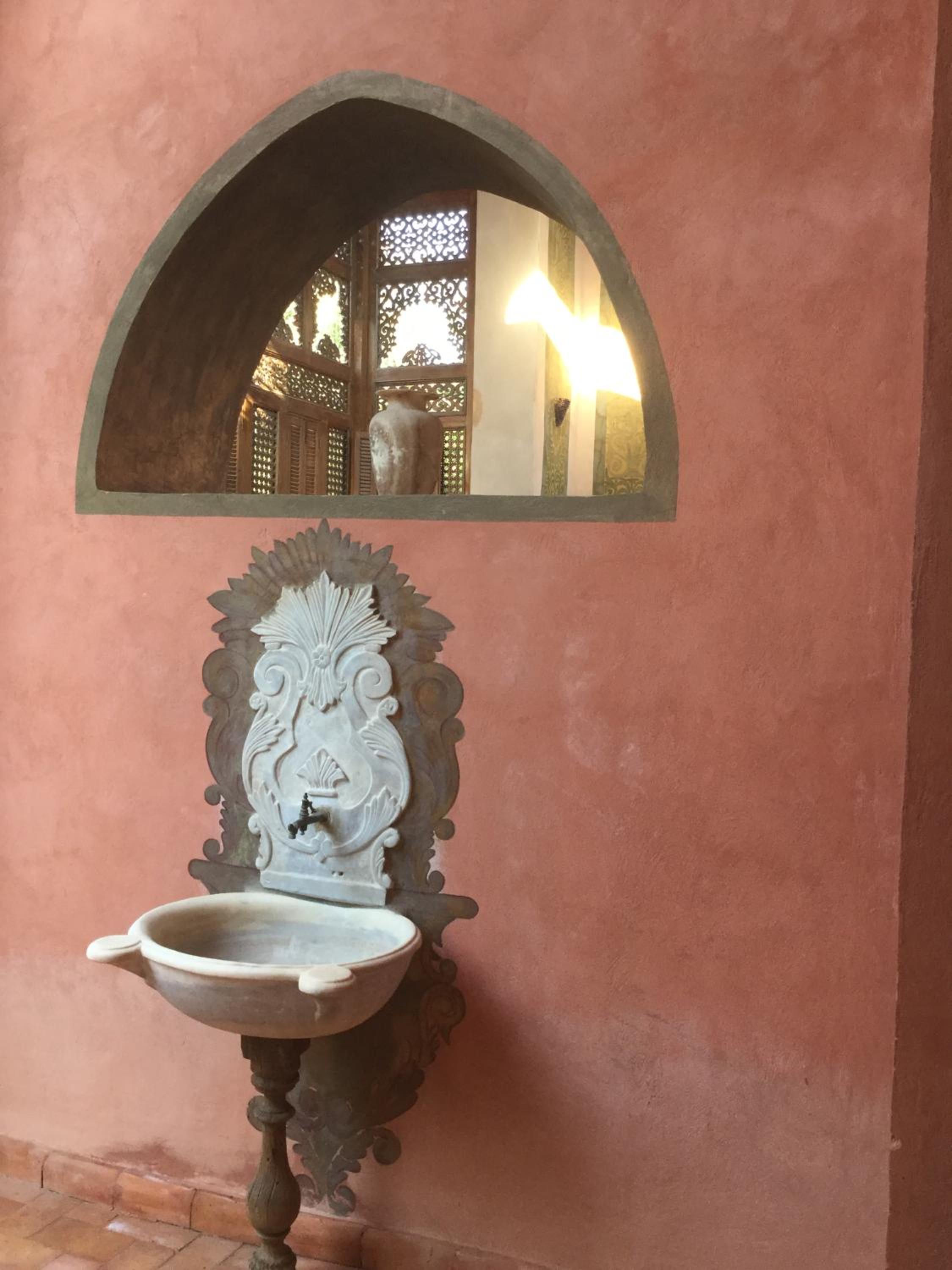 “Traditional” actually doesn’t even quite cover it. Al Moudira’s 54 rooms are palatial, ornate, fifty-plus square meters of stone, tile, gold leaf and antique furniture. Hammam-style bathrooms are spacious and well-lit, almost obviating the need to visit the spa — almost, but not quite, as the pool and the Turkish baths are a must-see, tempting indeed after a day in the heat and dust of Luxor, Karnak or the valleys.