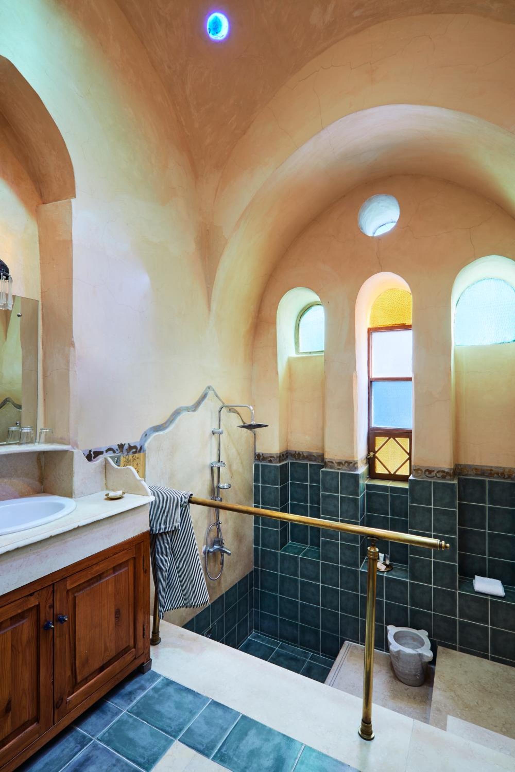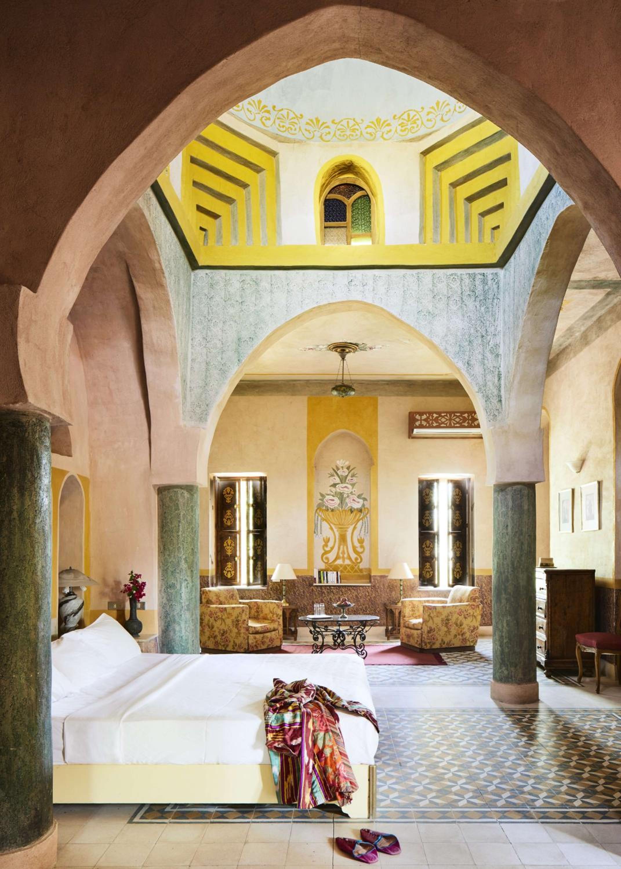 If there’s a down side, it’s that Al Moudira’s seclusion leaves guests at the mercy of the hotel for dining and entertainment. Thankfully it’s up to the task — the Great Room serves Middle Eastern and European fare beneath stone arches and crystal chandeliers, and cocktails are served in the British-style Colonial bar, the Arabian-themed Eastern, or, by day, simply out by the pool."