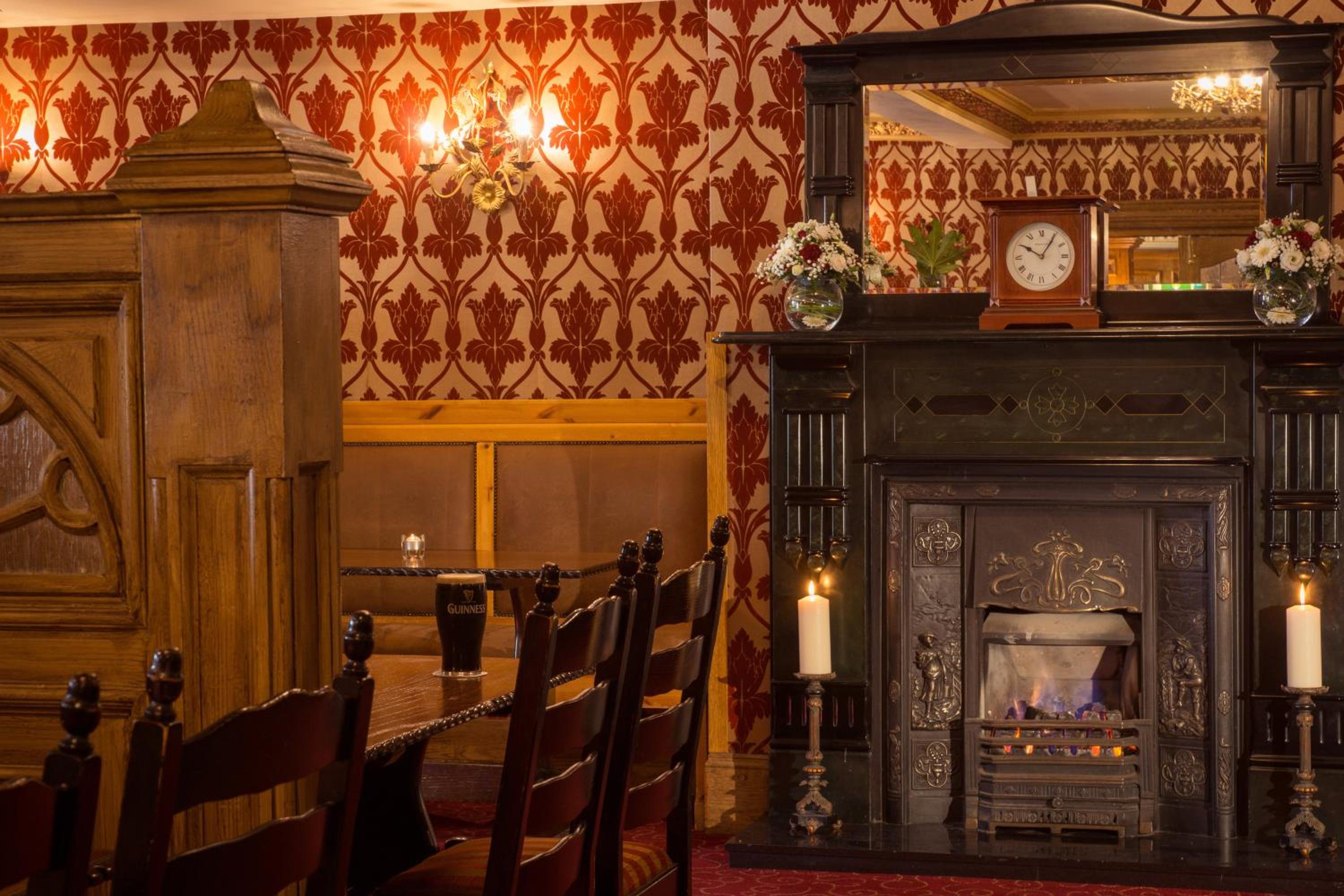 Enjoy traditional Irish cuisine, including fresh fish and steaks, in a charming setting with open fires and a wide selection of cocktails at the Derby Bar.