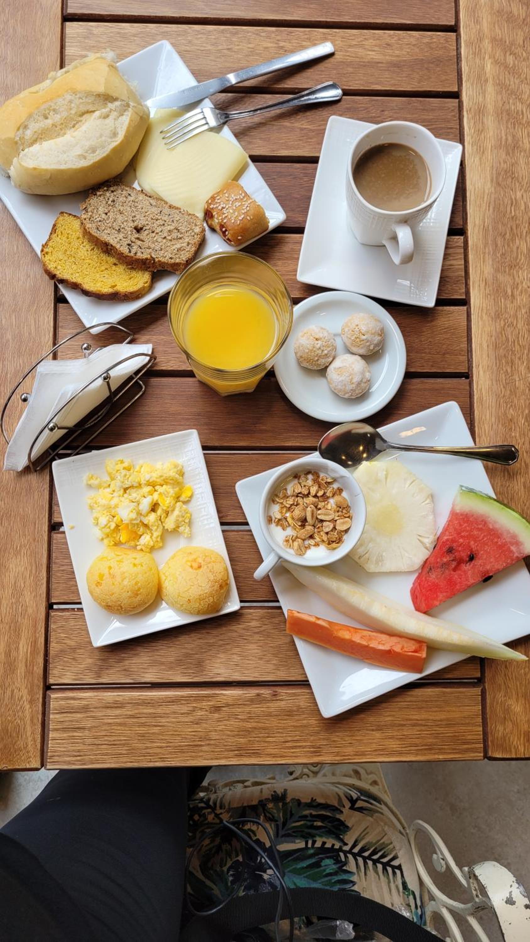Café da manhã é bom, só senti falta da variedade de pães e sucos. Critica construtiva, pois a pousada é maravilhosa.