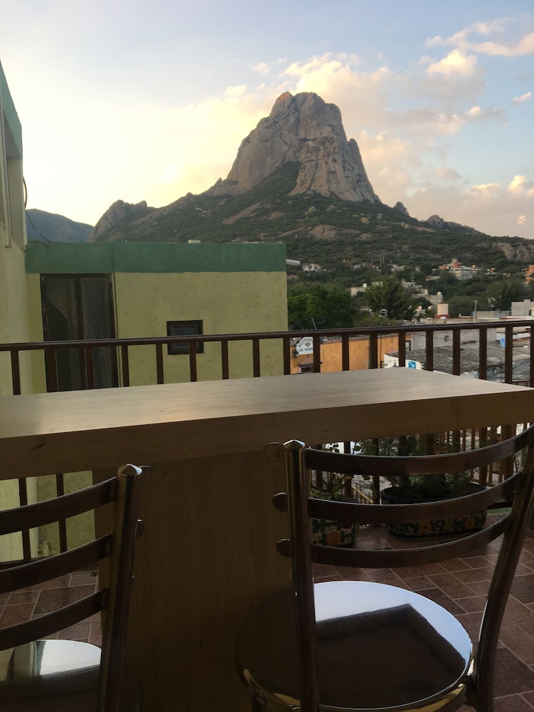 Son dos hoteles propiedad de Ricardo’s. Hicimos una reservación en uno que tenía una vista magnífica a la peña, sin embargo, este no contaba con alberca ni estacionamiento, ya que estaban en el otro que se encuentra a unos 5 min a pie. Nos instalamos y por la noche, nos “ofrecieron” con insistencia que nos pasáramos al otro hotel, con la excusa de que estaríamos cerca del auto y que había alberca (muy sucia, por cierto). Accedimos a regañadientes y tuvimos que empacar todo y cargarlo al otro. Las habitaciones están limpias y para solo pasar la noche están bien.