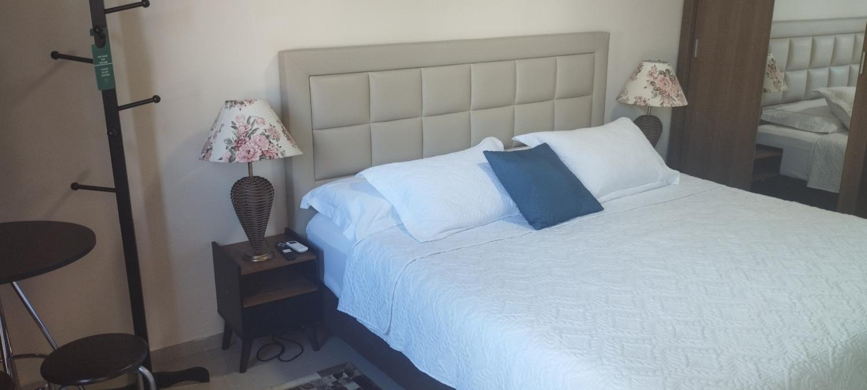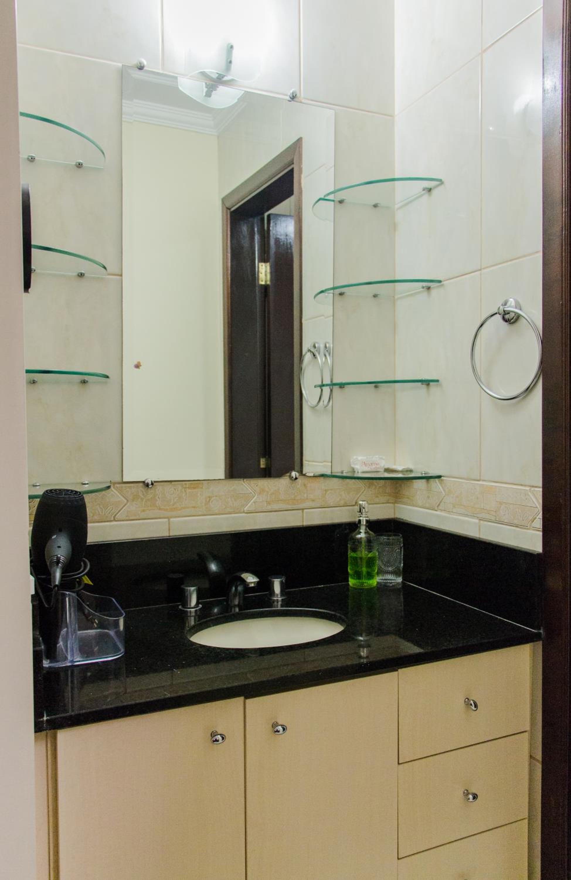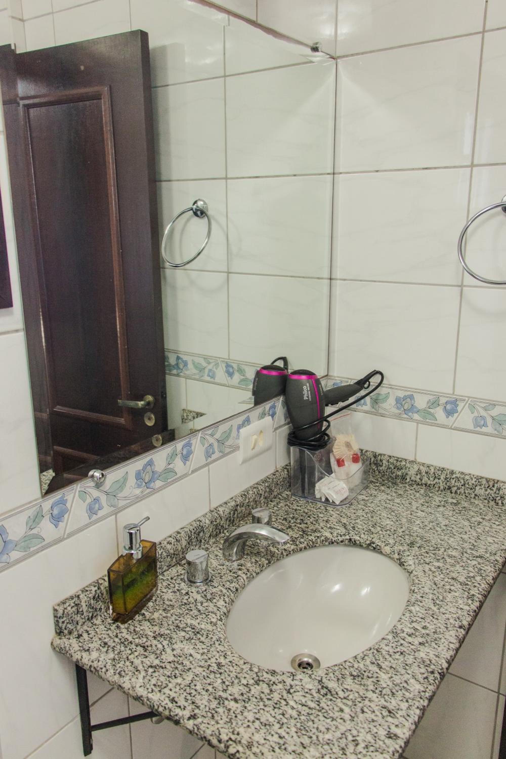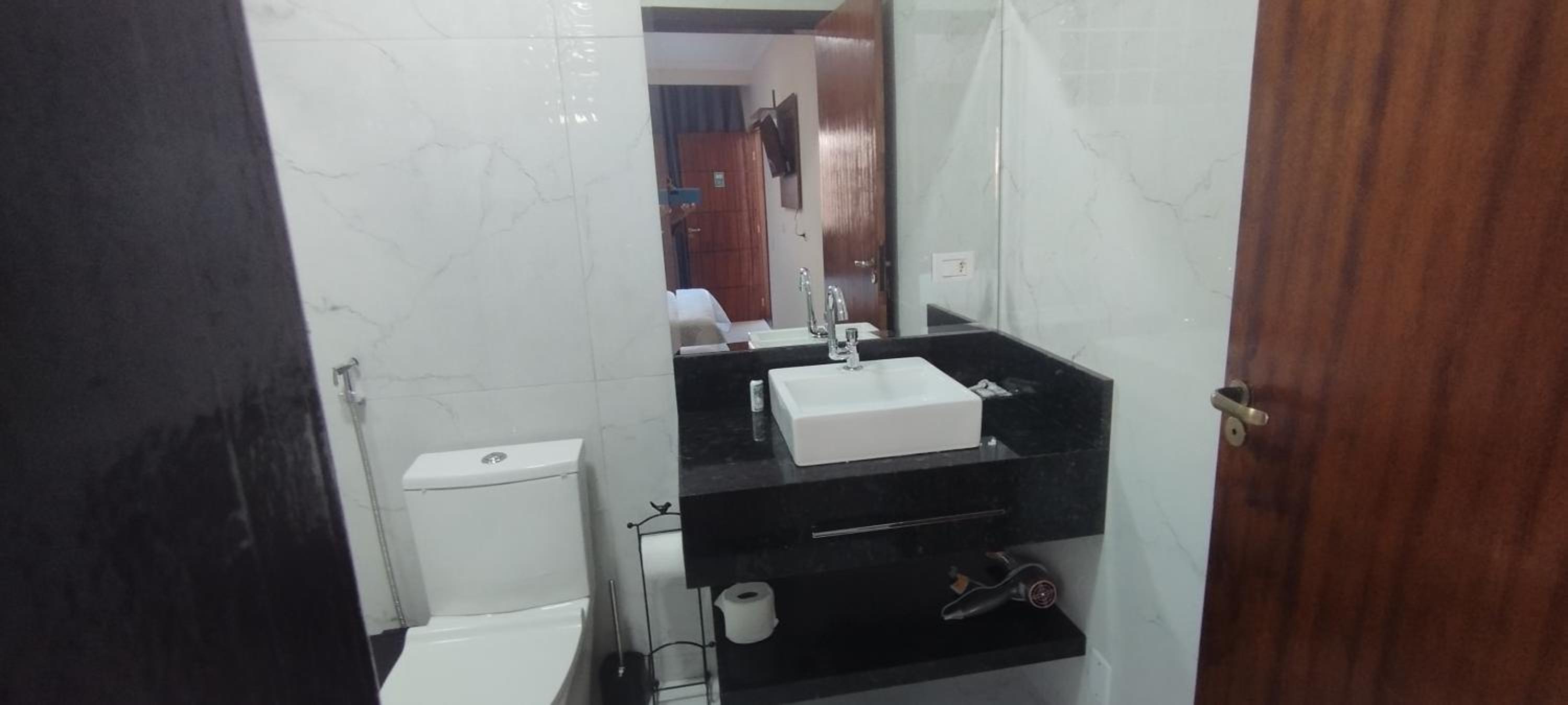 O quarto é bem espaçoso, com roupas de cama e banho cheirosas e agradáveis. O banheiro, de tamanho bem interessante, estava limpinho e nos proporcionou um banho bem gostoso.