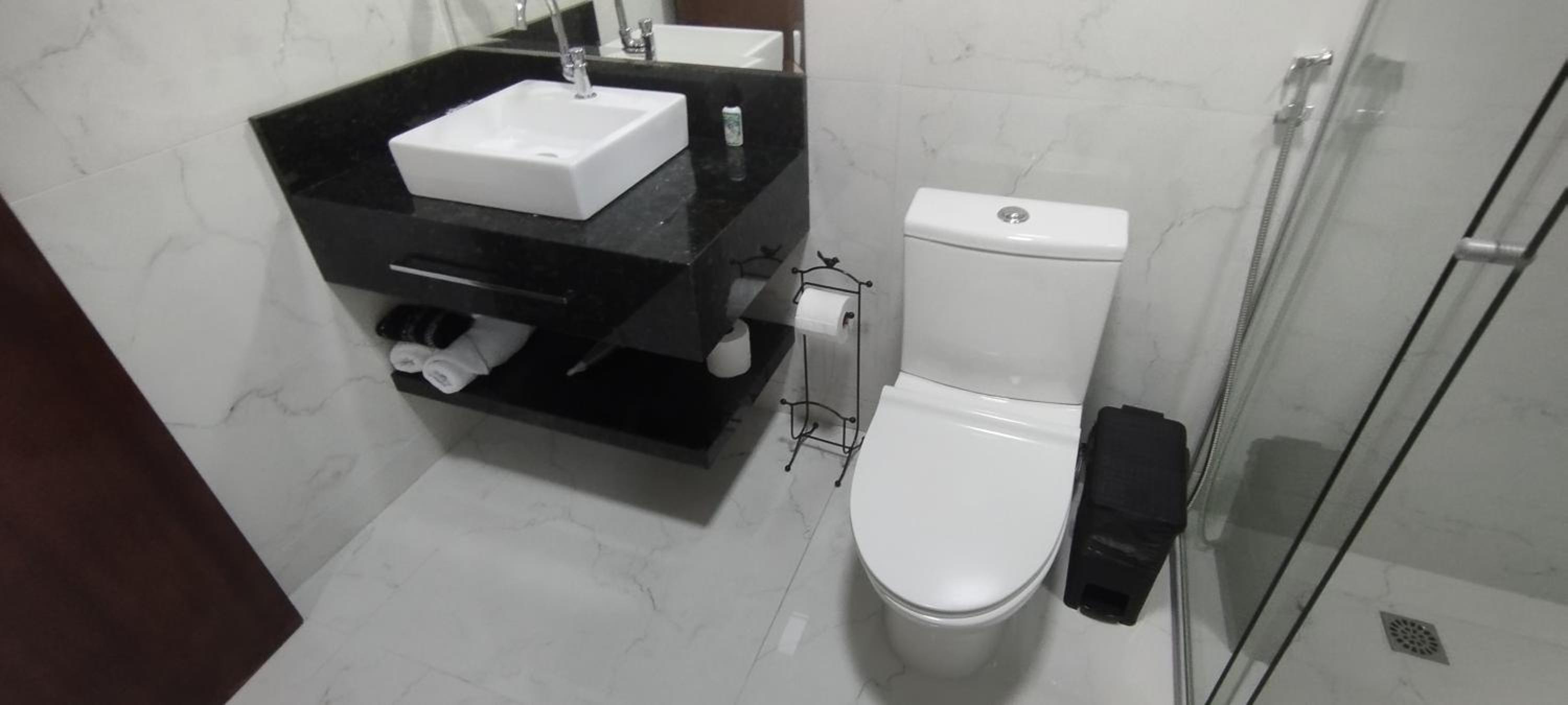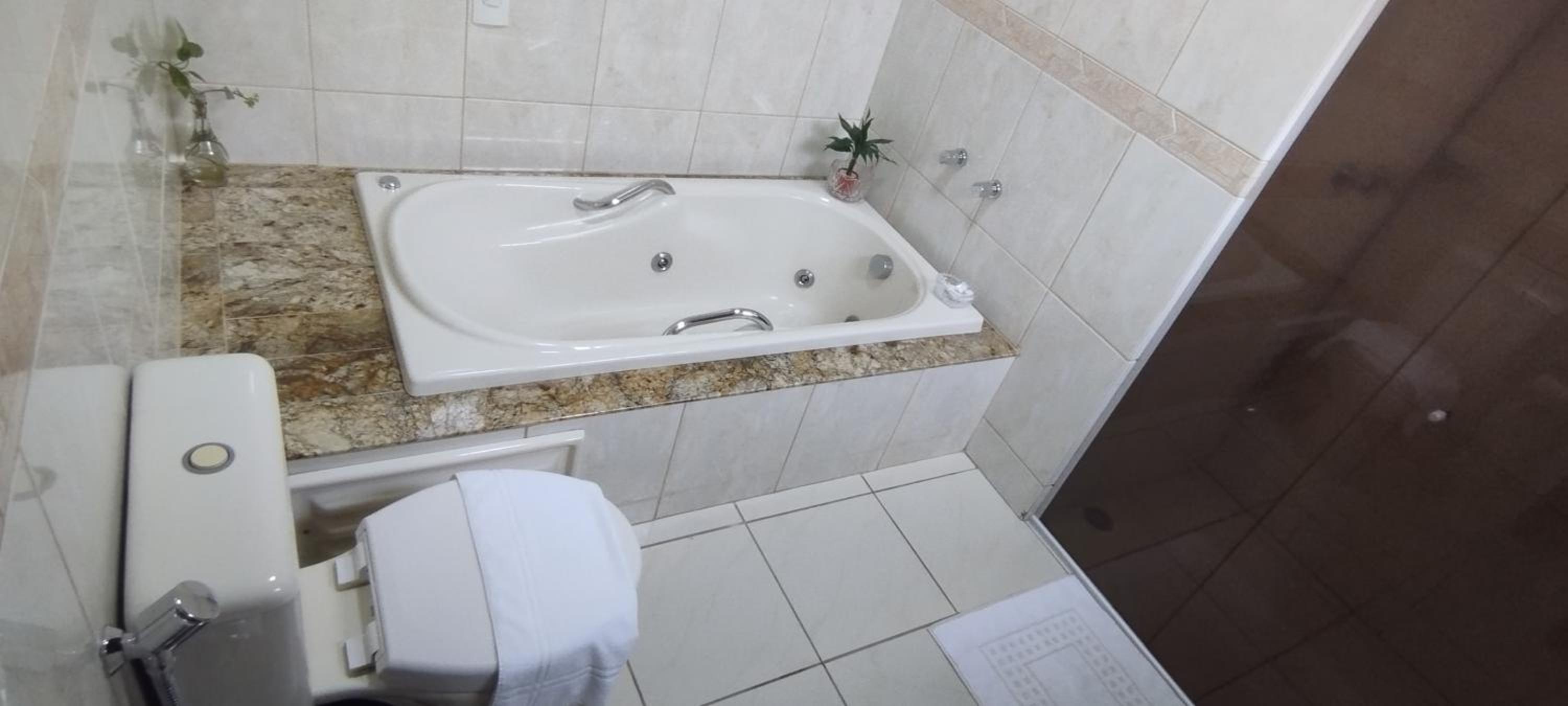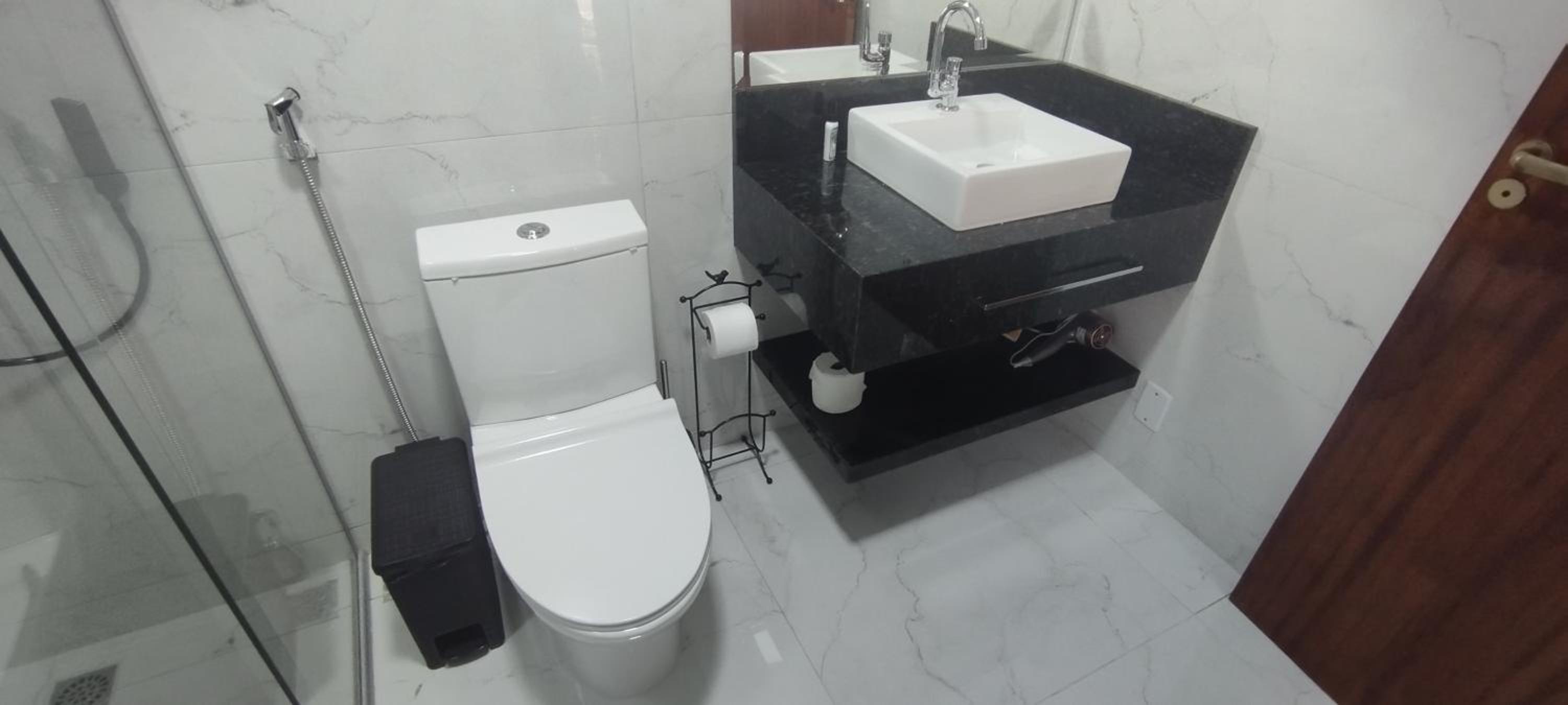 O quarto é bem espaçoso, com roupas de cama e banho cheirosas e agradáveis. O banheiro, de tamanho bem interessante, estava limpinho e nos proporcionou um banho bem gostoso.