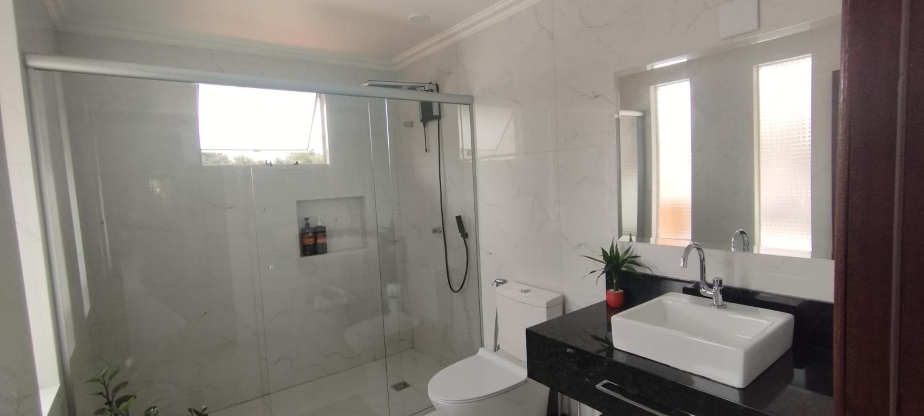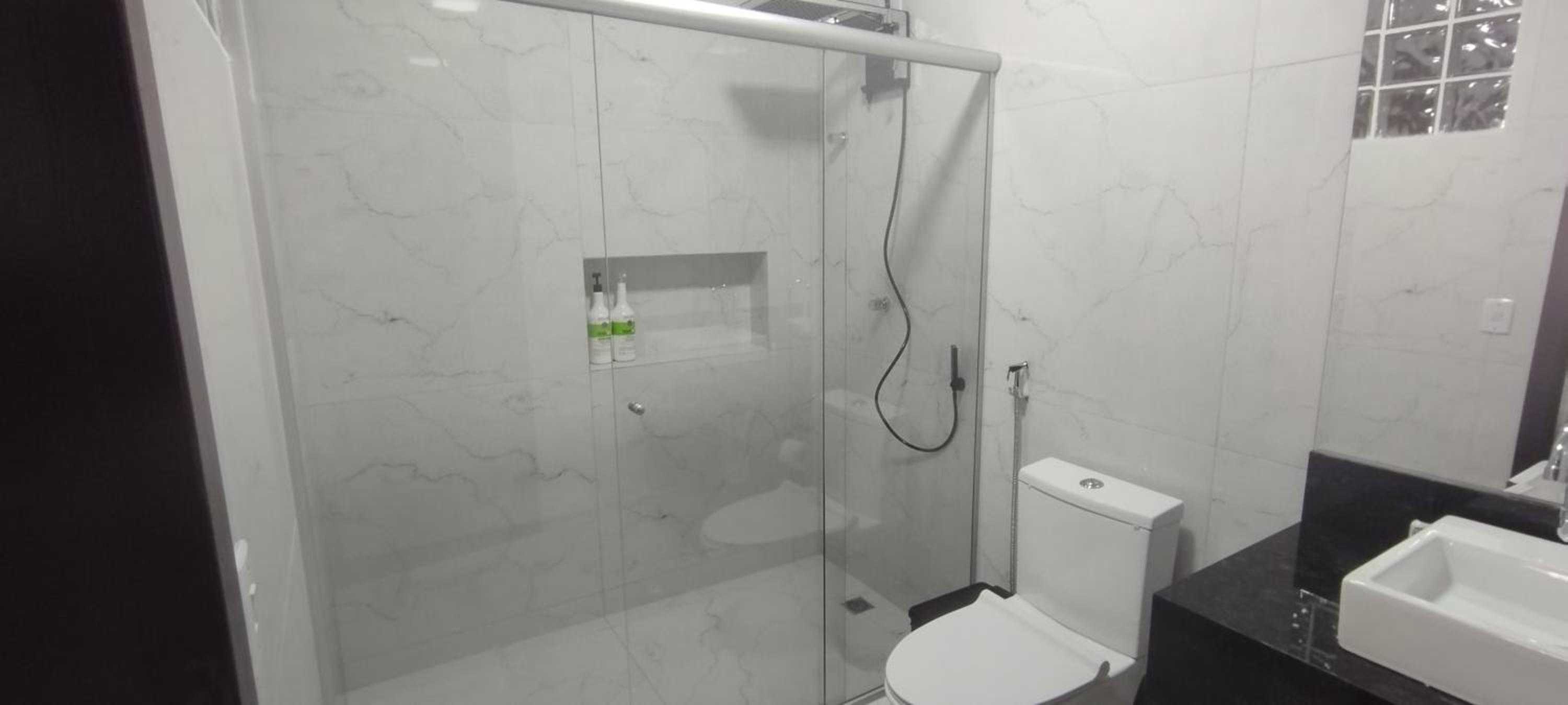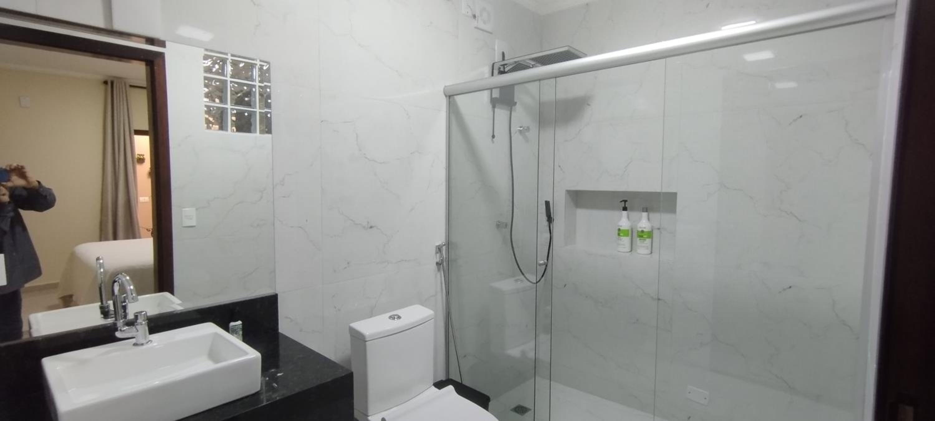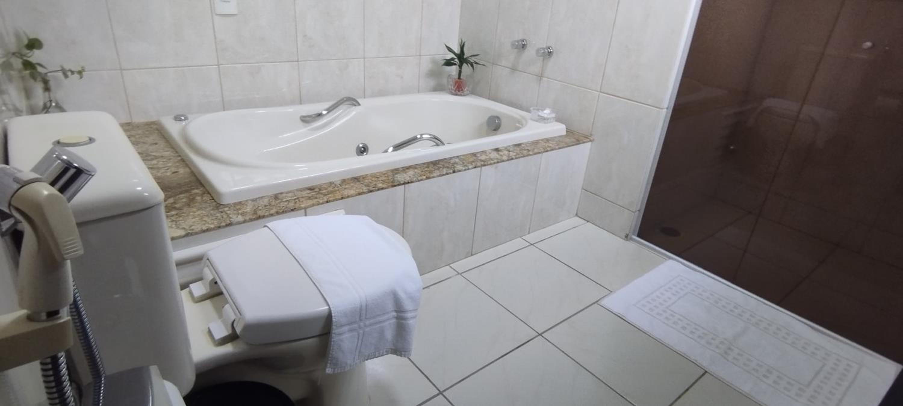 O quarto é bem espaçoso, com roupas de cama e banho cheirosas e agradáveis. O banheiro, de tamanho bem interessante, estava limpinho e nos proporcionou um banho bem gostoso.