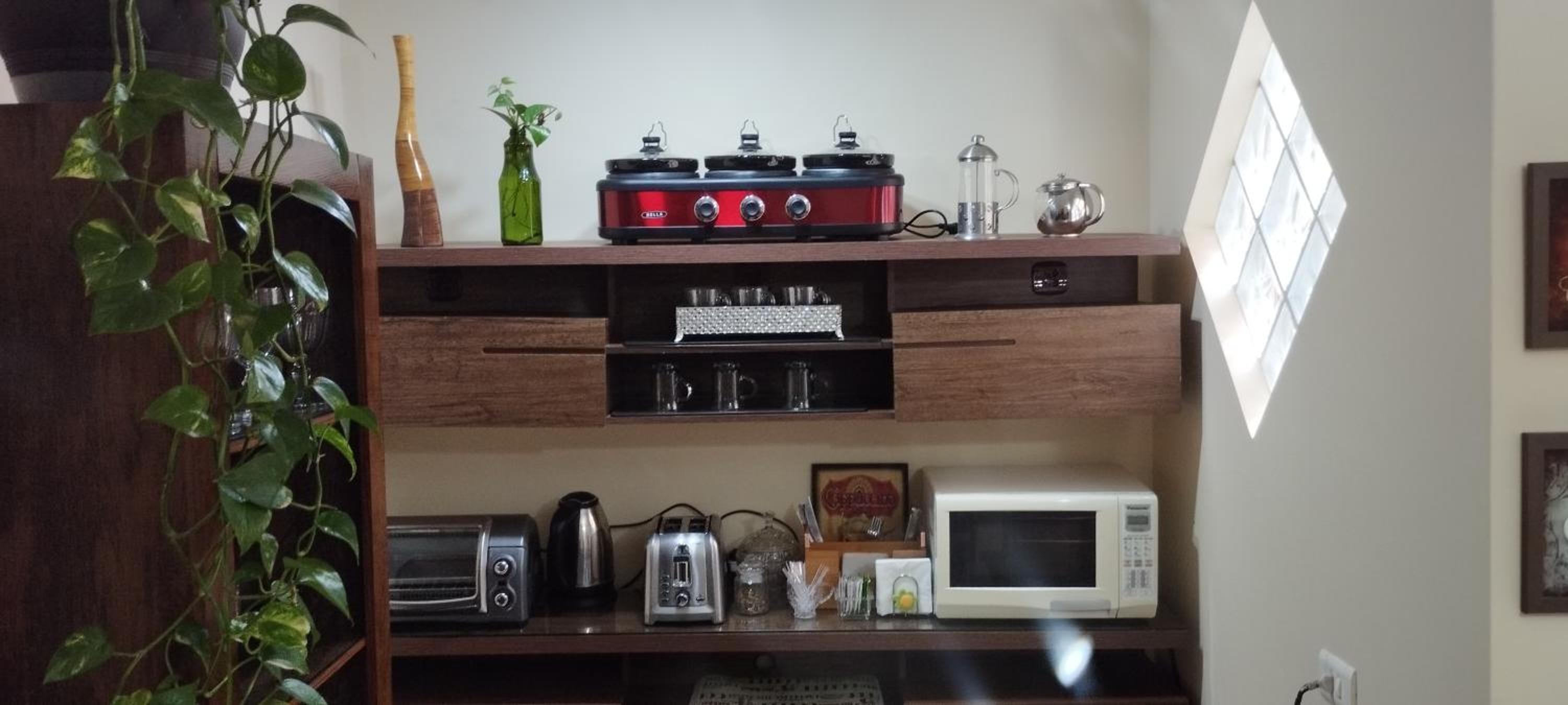 Lugar aconchegante, muito bonita decoração. Café, chá, bolachinhas a vontade, chegamos a noite, foi perfeito o chazinho, vc se sente em casa. Café da manhã delicioso.