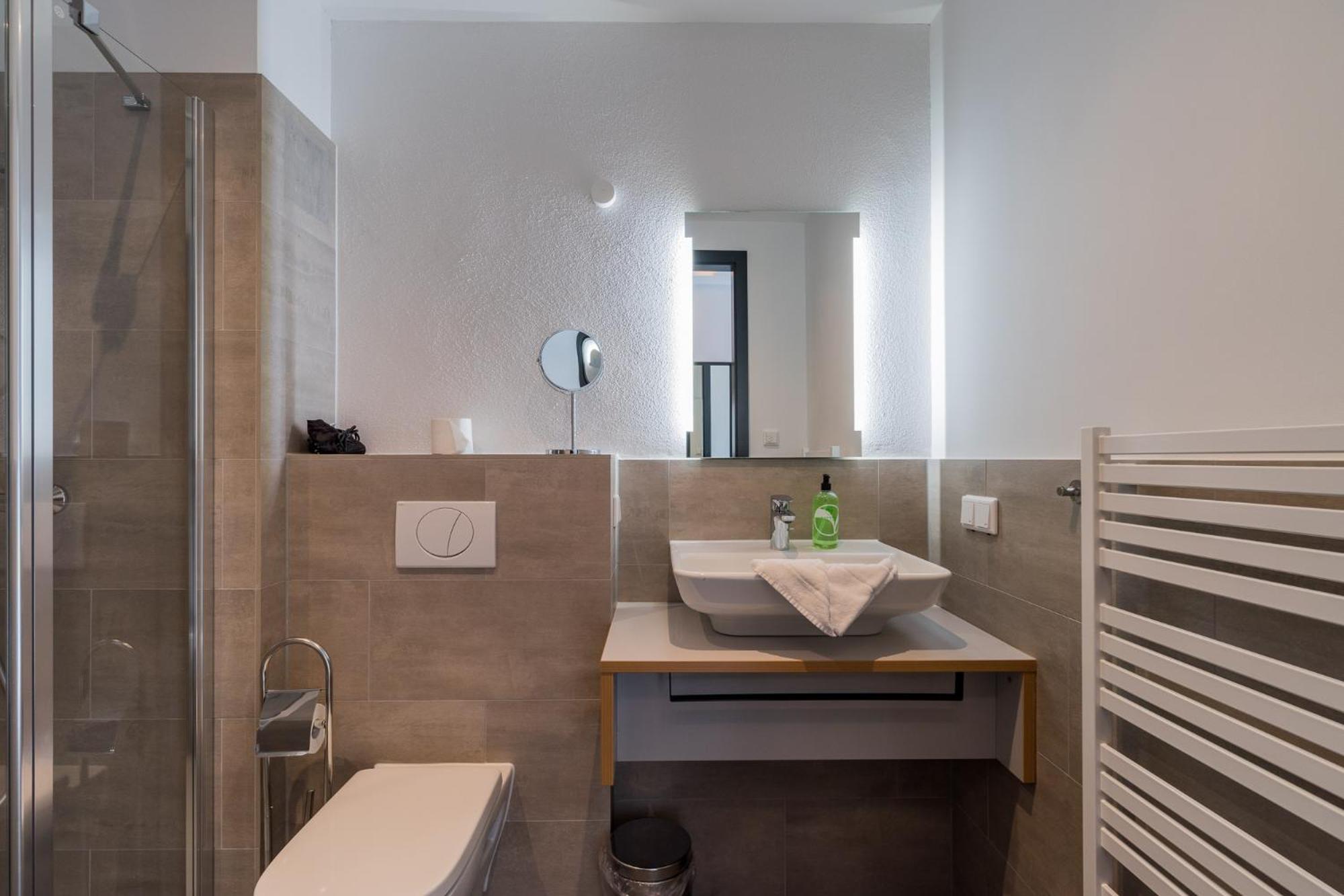 Prinzipiell schlicht aber gut ausgestattetes geräumiges Apartment. Über die M41 ist das Hotel direkt mit dem Hauptbahnhof verbunden.