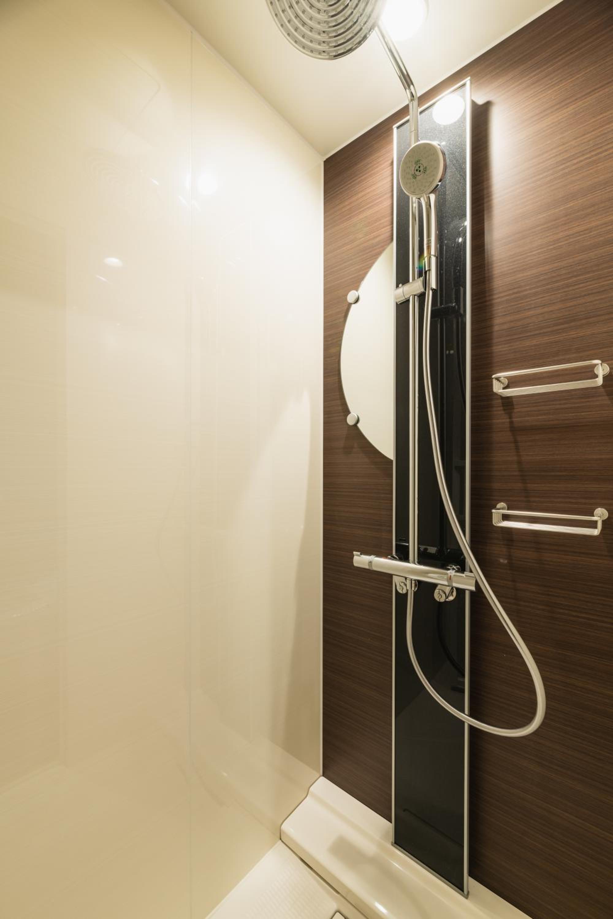 분리된 욕실과 변기, 다다미 바닥있는 좌식공간이 별도로있어 4인이서 포장음식 먹기 좋음