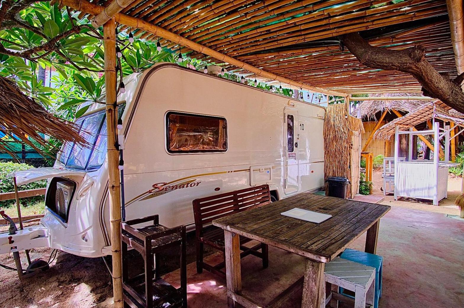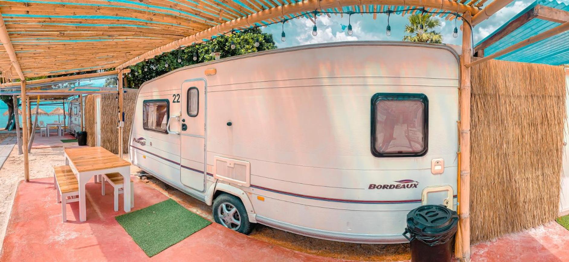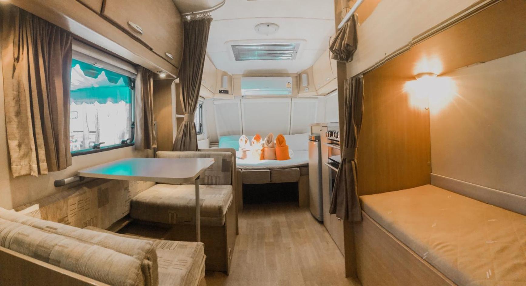 Unique place. Sleeping in RV camper/Caravan. Next to a restaurant and within walking distance of other restaurants.
