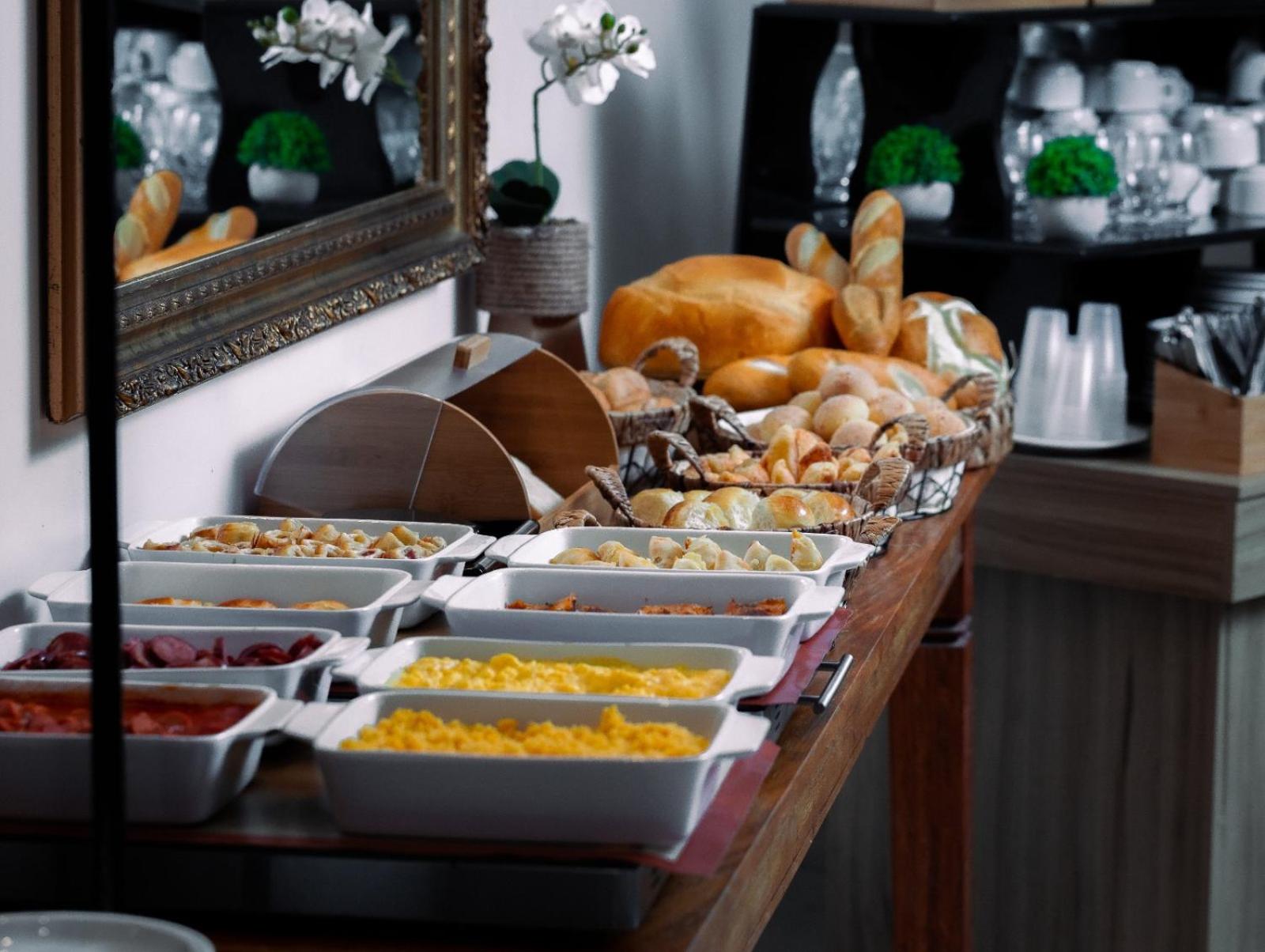 café da manhã é muito gostoso, quarto bem espaçoso, tudo limpo e organizado.