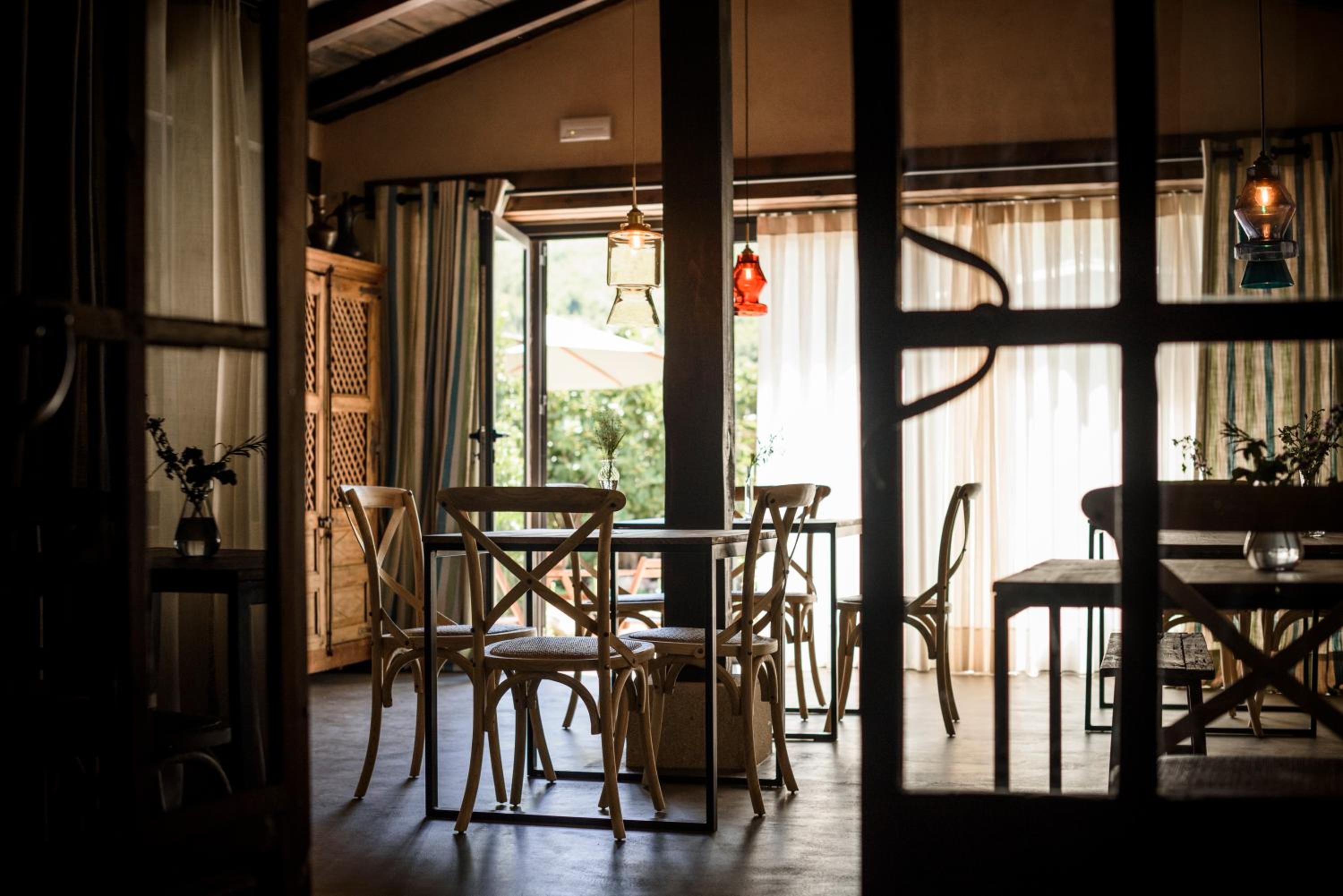 A hidden gem of an historical boutique hotel filled with fabulous art and interior design , in the centre of beautiful village . Sadly no natural light in the longe.