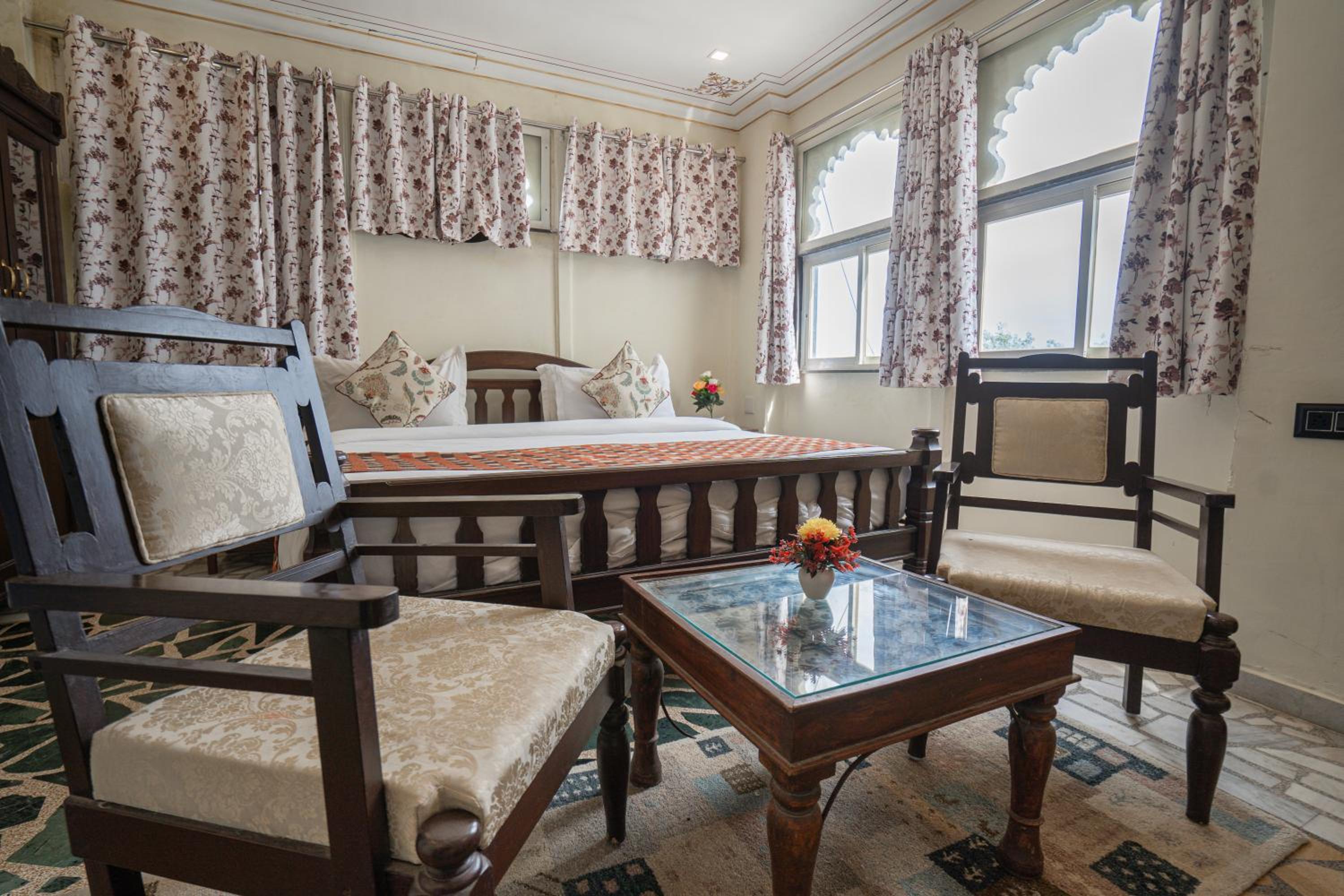 Experience the charm of a bygone era with our traditional Rajasthani Haveli décor. Each room is tastefully designed to reflect the rich cultural heritage of Rajasthan, offering a unique and authentic stay experience.