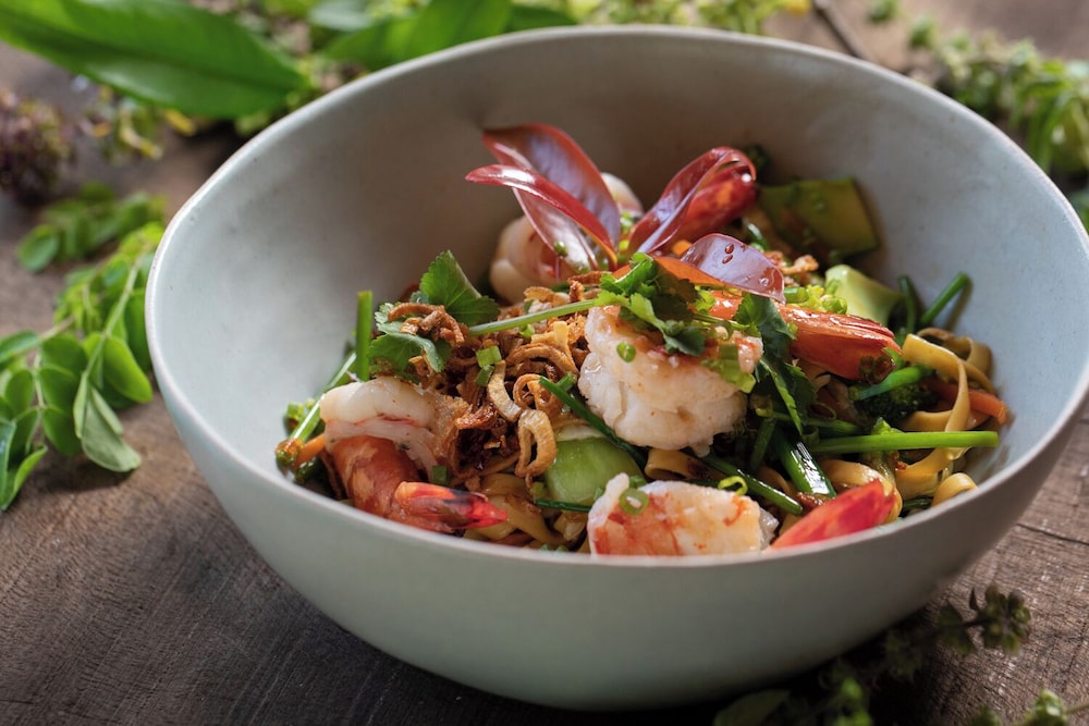 The local cuisine served at the restaurant was excellent, albeit at a premium price. This is understandable as it is the top resort on the island. The tempura prawns and spring rolls make for delicious poolside snacks. The pizza is also a good option for children who prefer familiar food. The beers are chilled, and the coffee is of decent quality, both perfect for enjoying by the pool. The cocktails in the evening were quite enjoyable overall and reasonably priced.