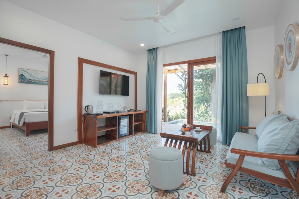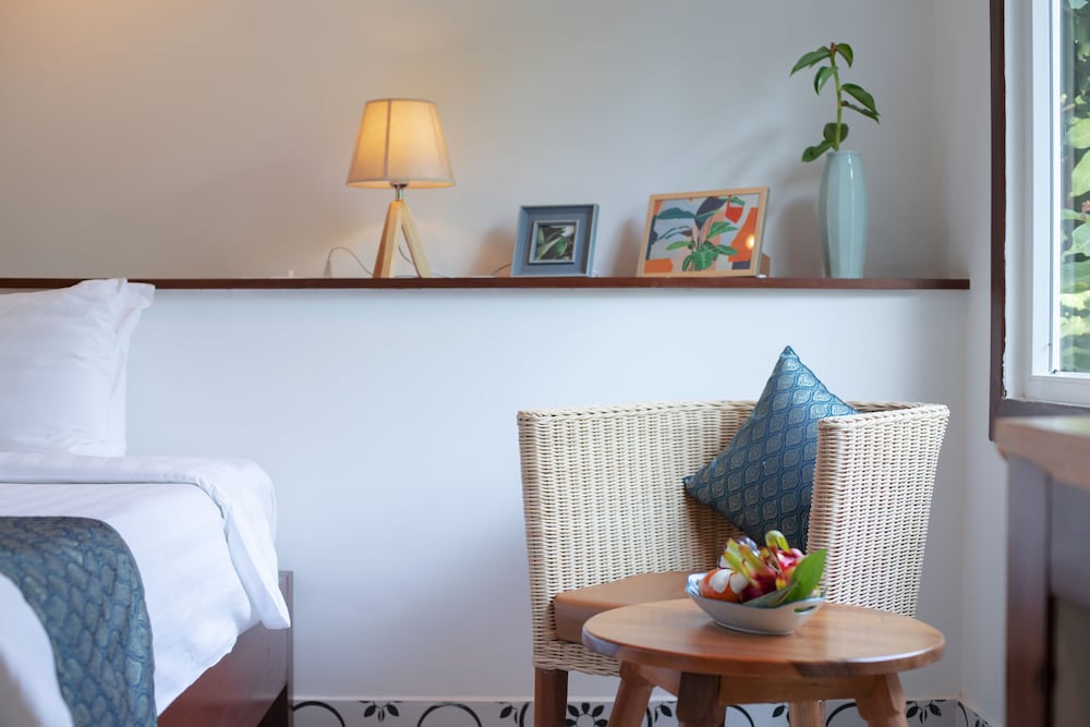 Unwind in one of our 42 air-conditioned rooms, each featuring private furnished balconies and modern amenities like minibars and rainfall showerheads in the bathrooms.