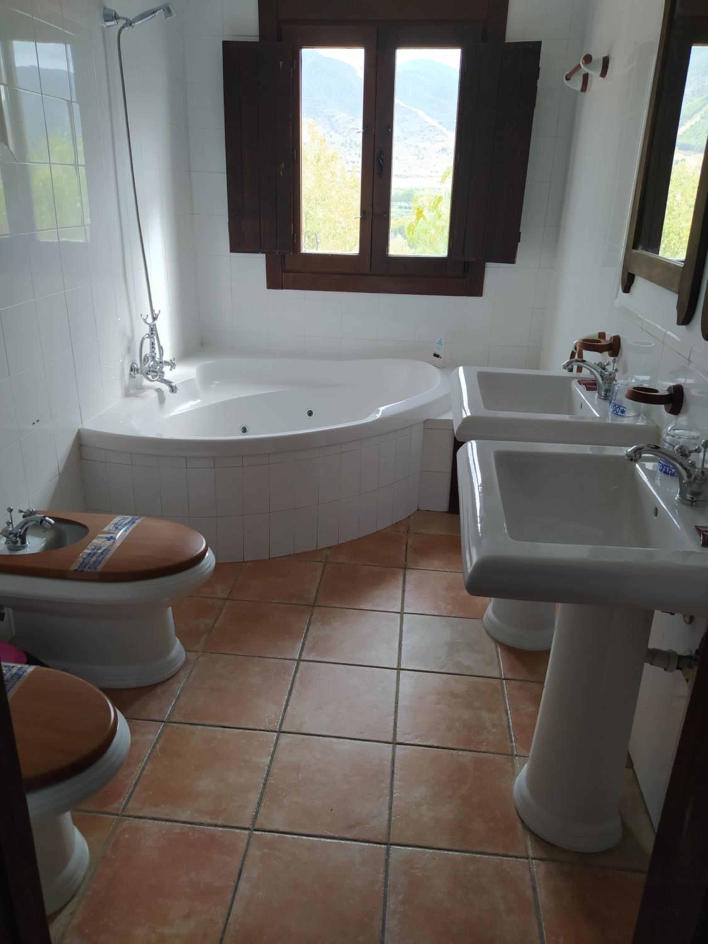 La habitación con bañera, cama, aire acondicionado (y calor), balconcillo para comer/beber tranquilamente con vistas al campo, baño amplio con bañera.. todo excepcional.