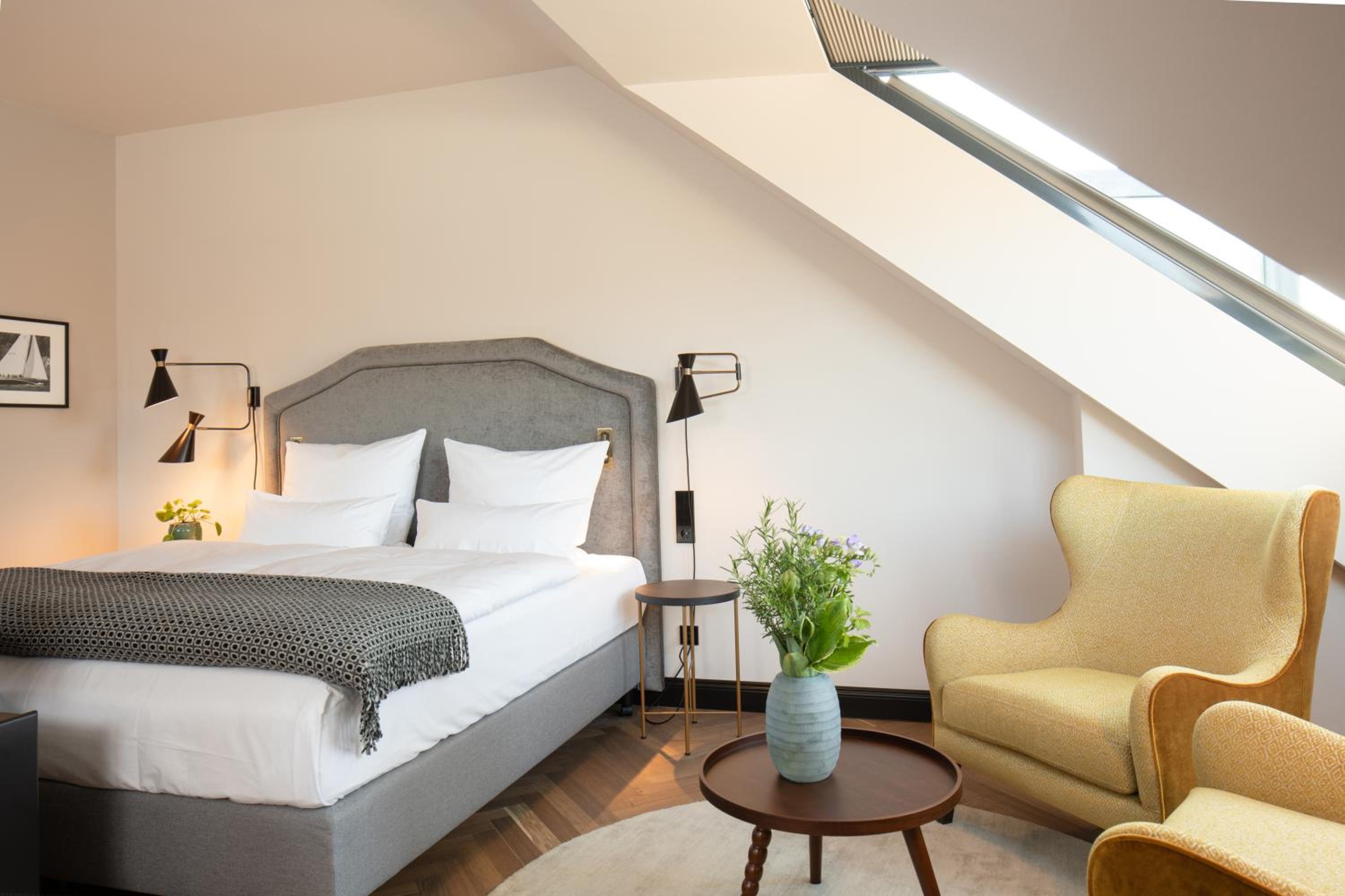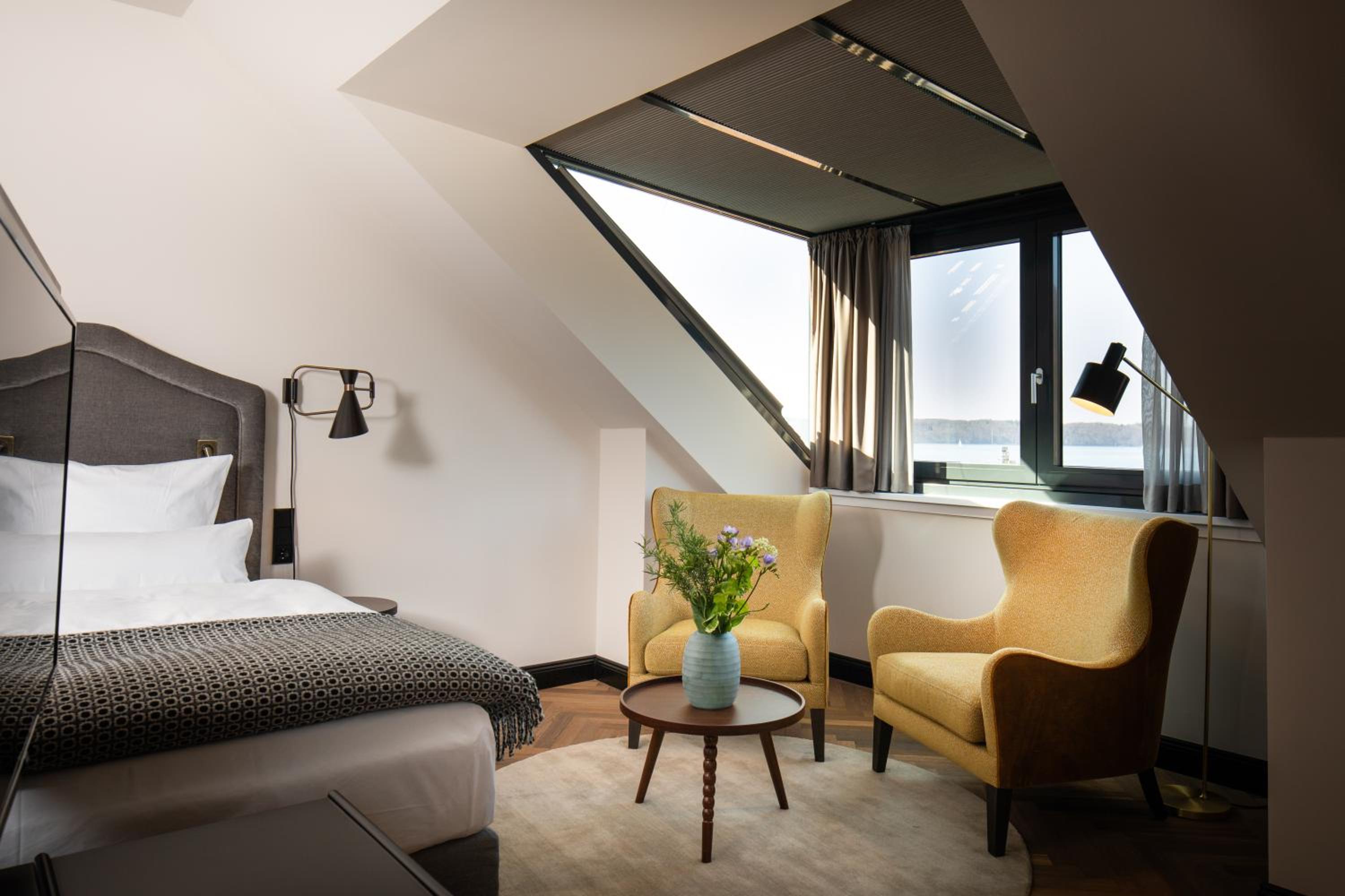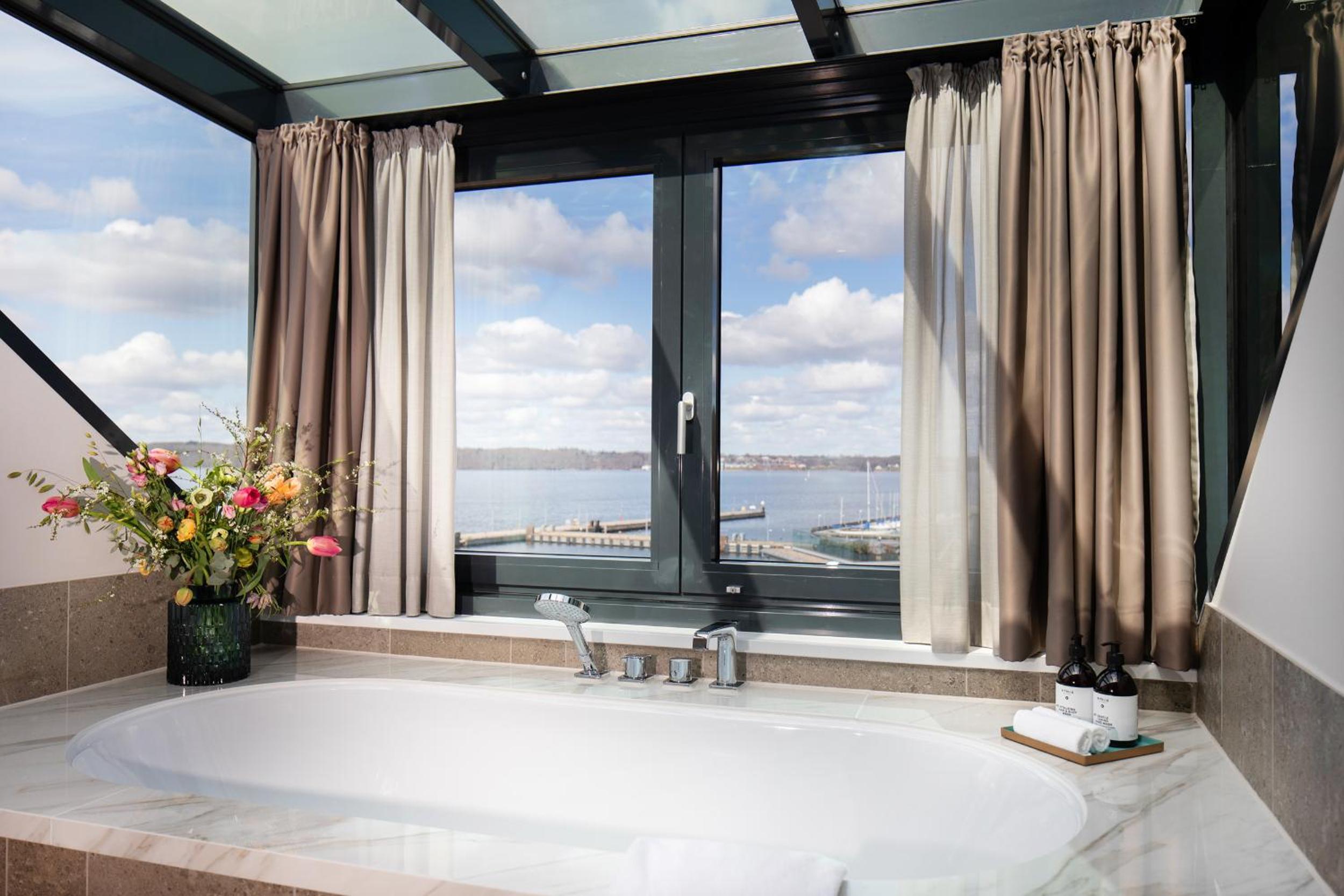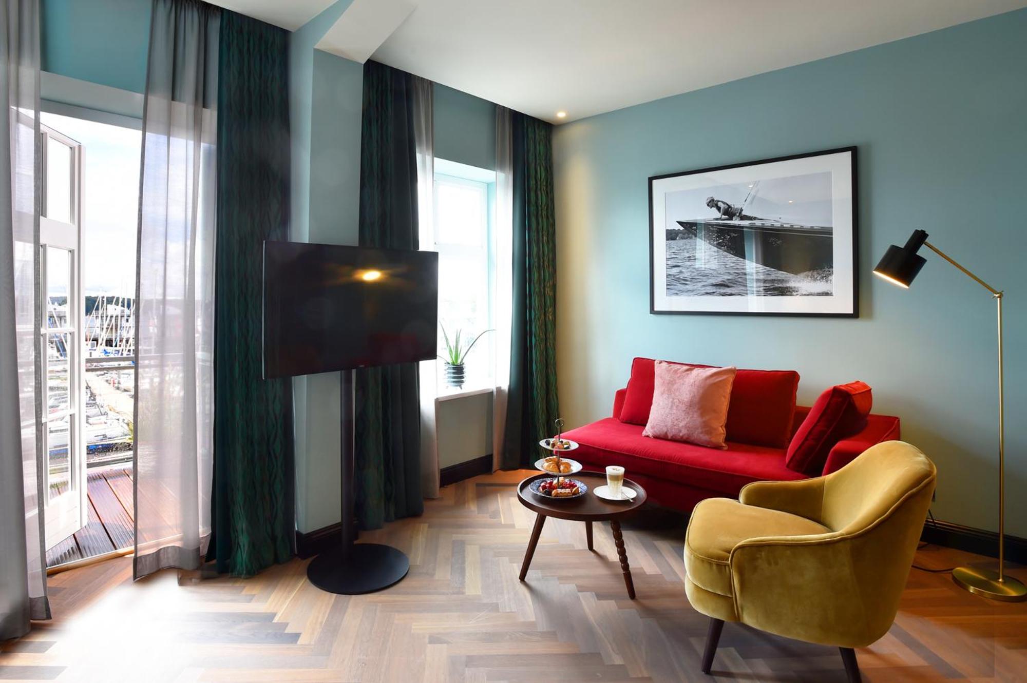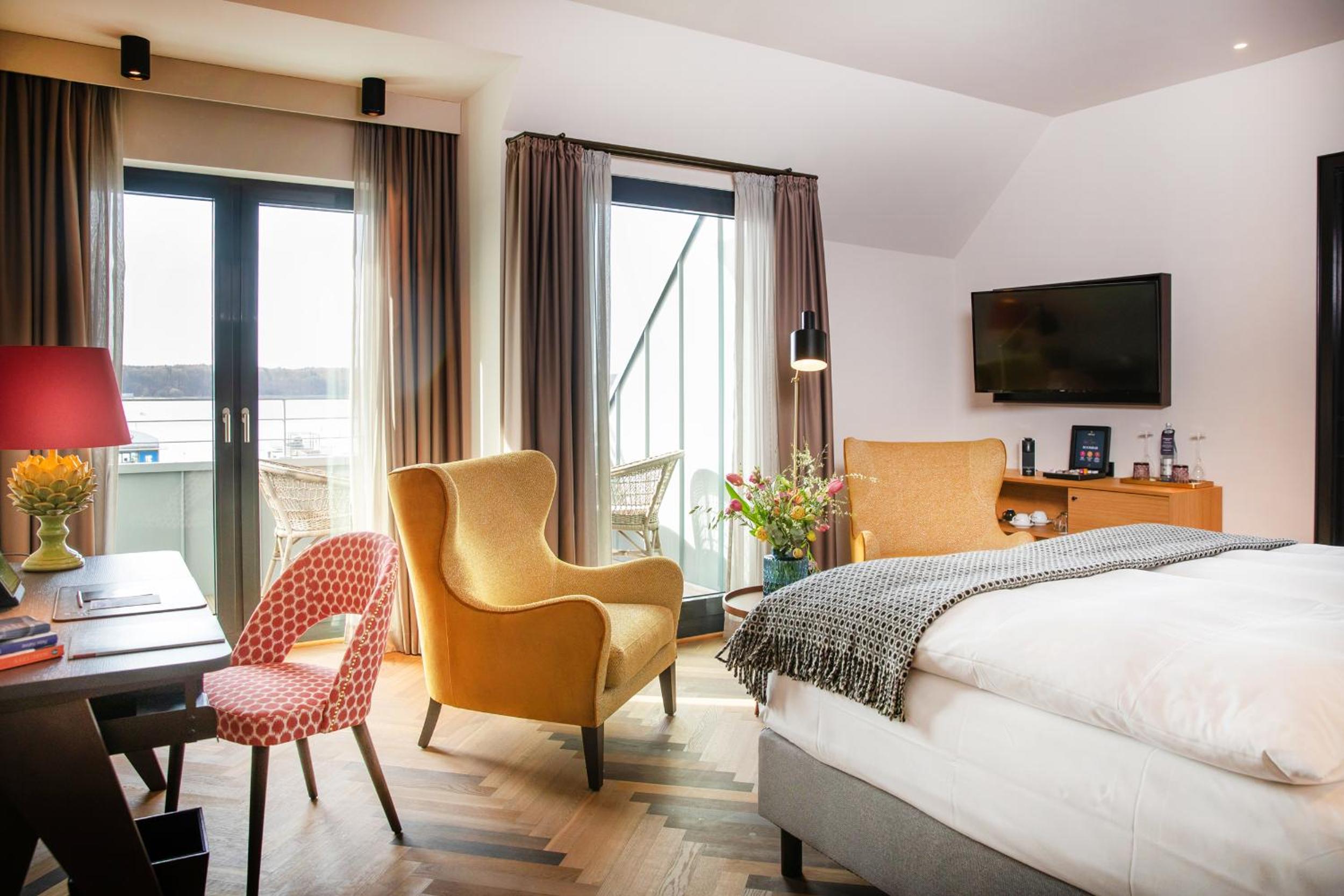 Situated on the scenic Flensburg Fjord, The James offers an unparalleled experience with its 24-hour reception, 3 restaurants, 2 bars, lush garden, and a sprawling 2,000 m² wellness area.